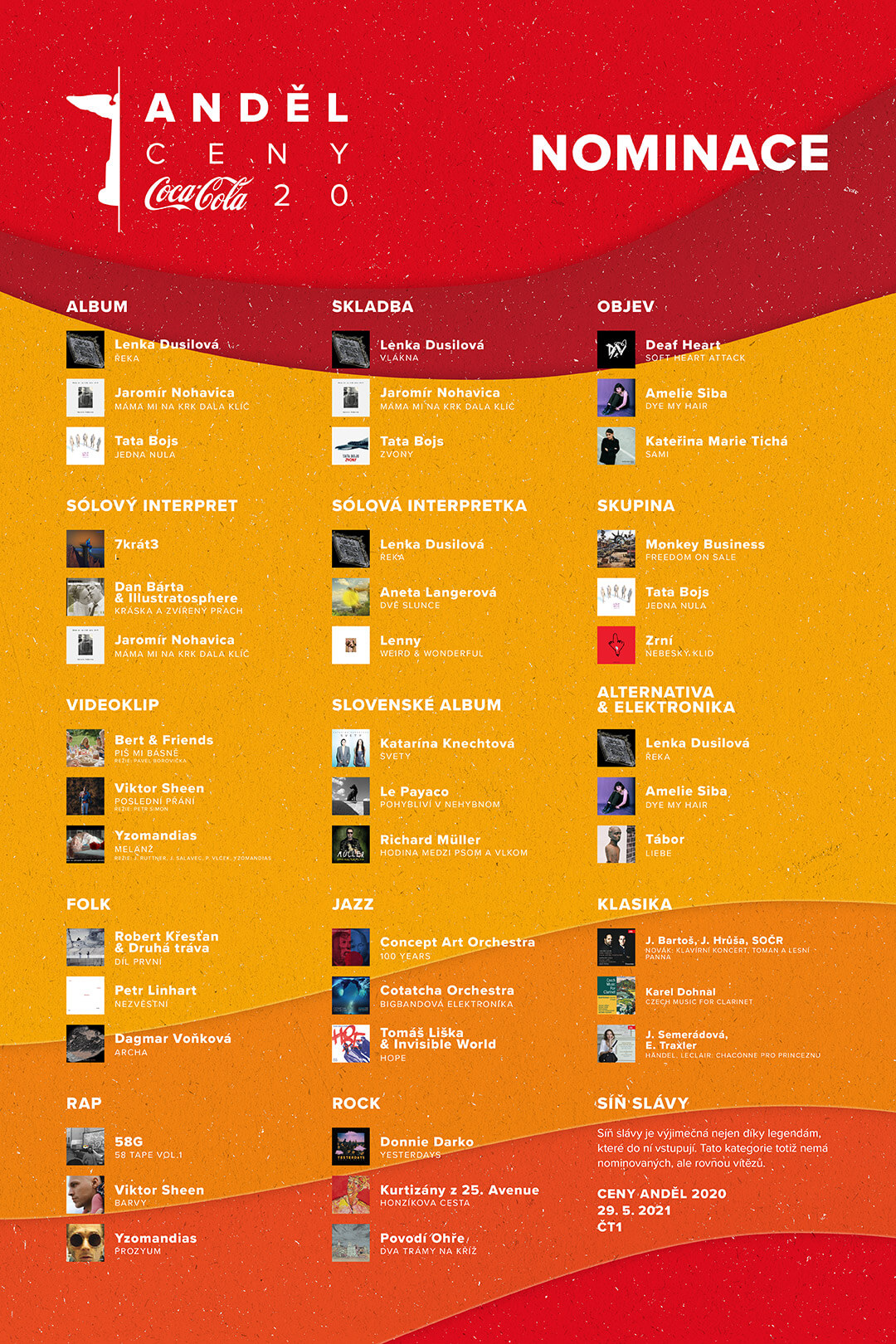 NOMINÁCIE na Ceny Českej hudobnej akadémie – Anděl Coca-Cola 2020