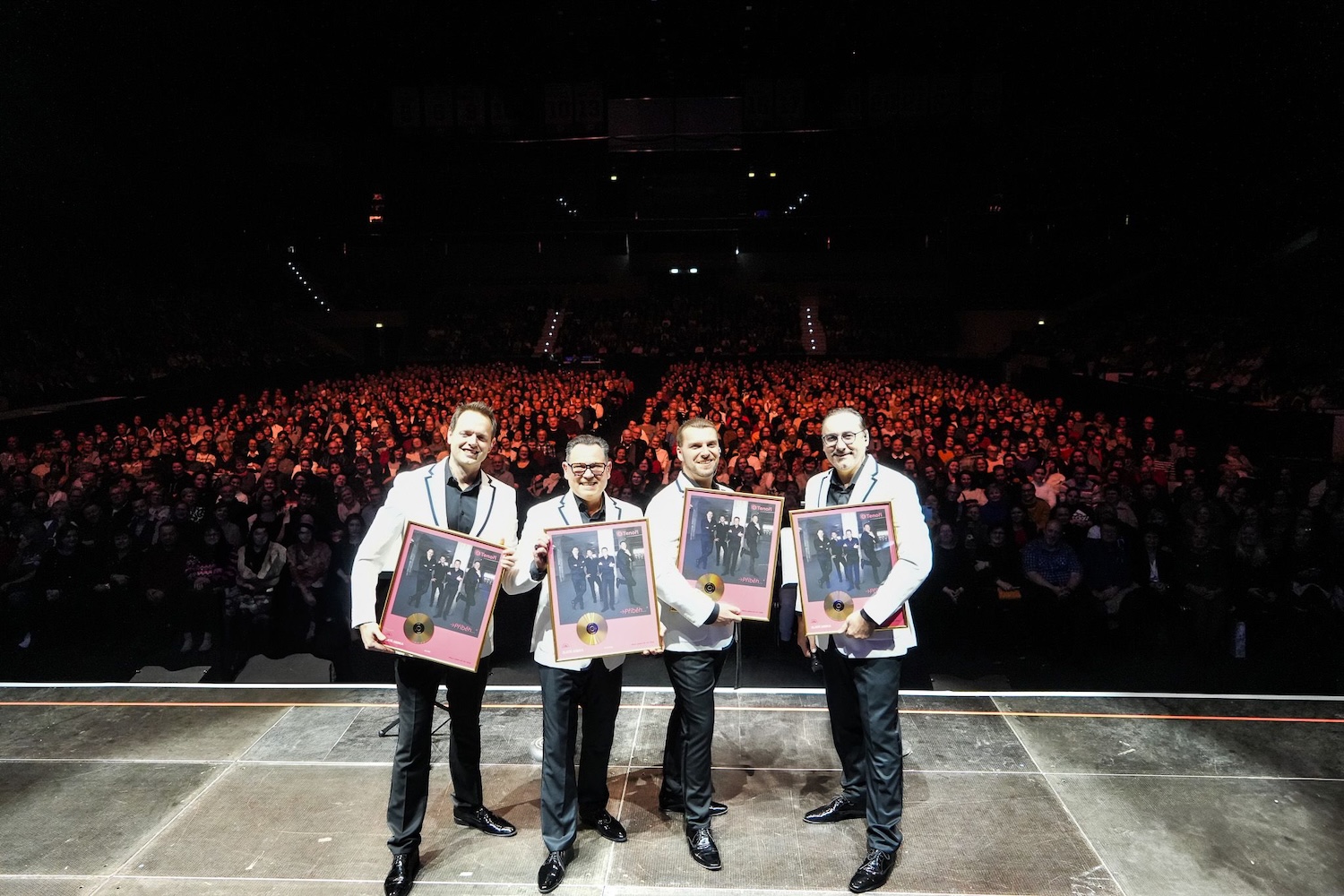 Tretí album 4 Tenorov Příběh, ktorý vyšiel koncom októbra, je kolekciou 11 slávnych piesní z filmov a muzikálov a obsahuje i duety s bronzovou slávicou Monikou Absolonovou a bardom českej populárnej piesne Jiřím Suchým. Album, dostupný na CD, LP i digitálne, sa stal zlatým podľa pravidiel IFPI-ČR v priebehu necelého mesiaca. Koncert v pardubickej Enteria aréne bol ideálnou príležitosťou pre zástupcov vydavateľstva Supraphon, aby protagonistom odovzdali zlatú platňu pred nadšeným publikom vypredaného galakoncertu.