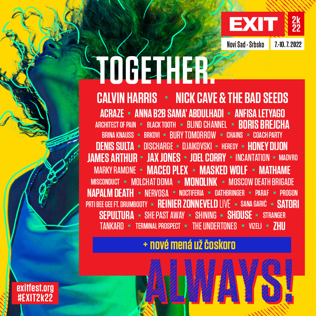 Spolu už s zverejnenými menami ako Nick CaveBoris Brejcha tvoria skvelý multižánrový festivalový line-up, ktorý čoskoro doplnia ďalšie mená. EXIT festival 2022 sa bude konať 7. – 10. júla 2022 na úžasnom a exkluzívnaom mieste, v stredovekej Petrovaradínskej pevnosti srbského mesta Novy Sad.