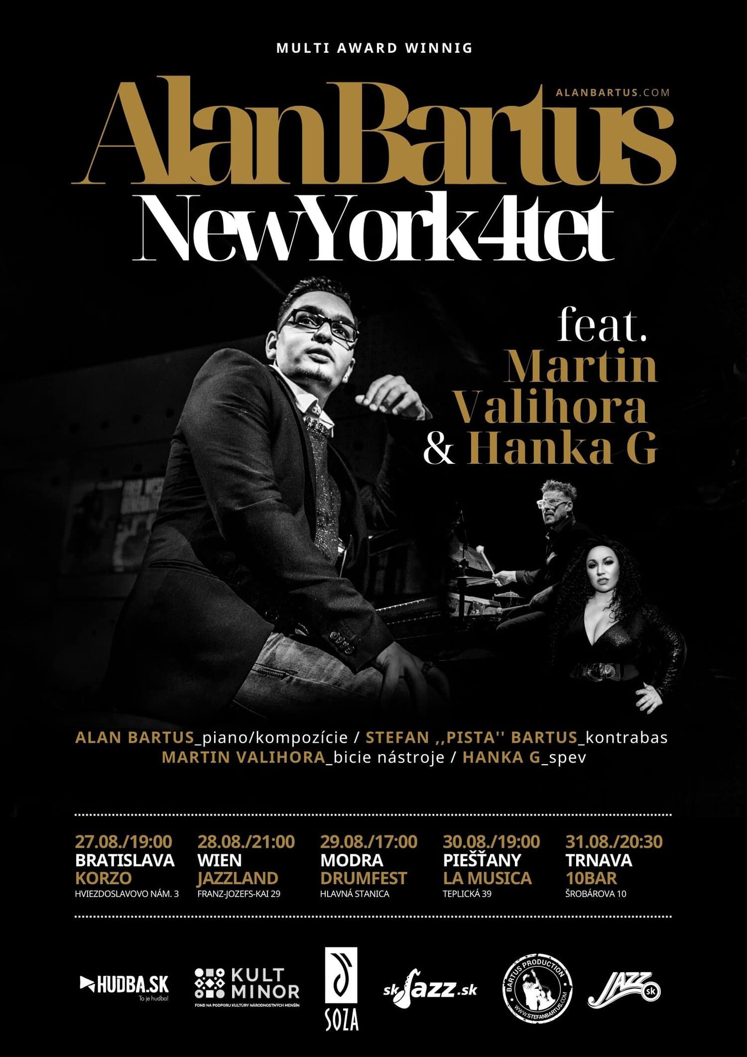 Oceňovaný slovenský pianista Alan Bartuš, ktorý patrí medzi 10 najlepších jazzových klaviristov sveta svojej generácie, sa po prázdninách pred návratom do NY na dokončenie master štúdia na Manhattan School of Music chystá na turné. Na tomto turné predstaví svoj úspešný album „Born in Millennium“, ktorý získal ocenenie Jazzový album roka 2023 v rámci Radio_Head Awards. Výber Herbieho Hancocka, ktorý zaradil Alana do semifinále najprestížnejšej svetovej jazzovej súťaže Monk Competition v New Yorku, potvrdzuje jeho výnimočné postavenie na medzinárodnej jazzovej scéne.