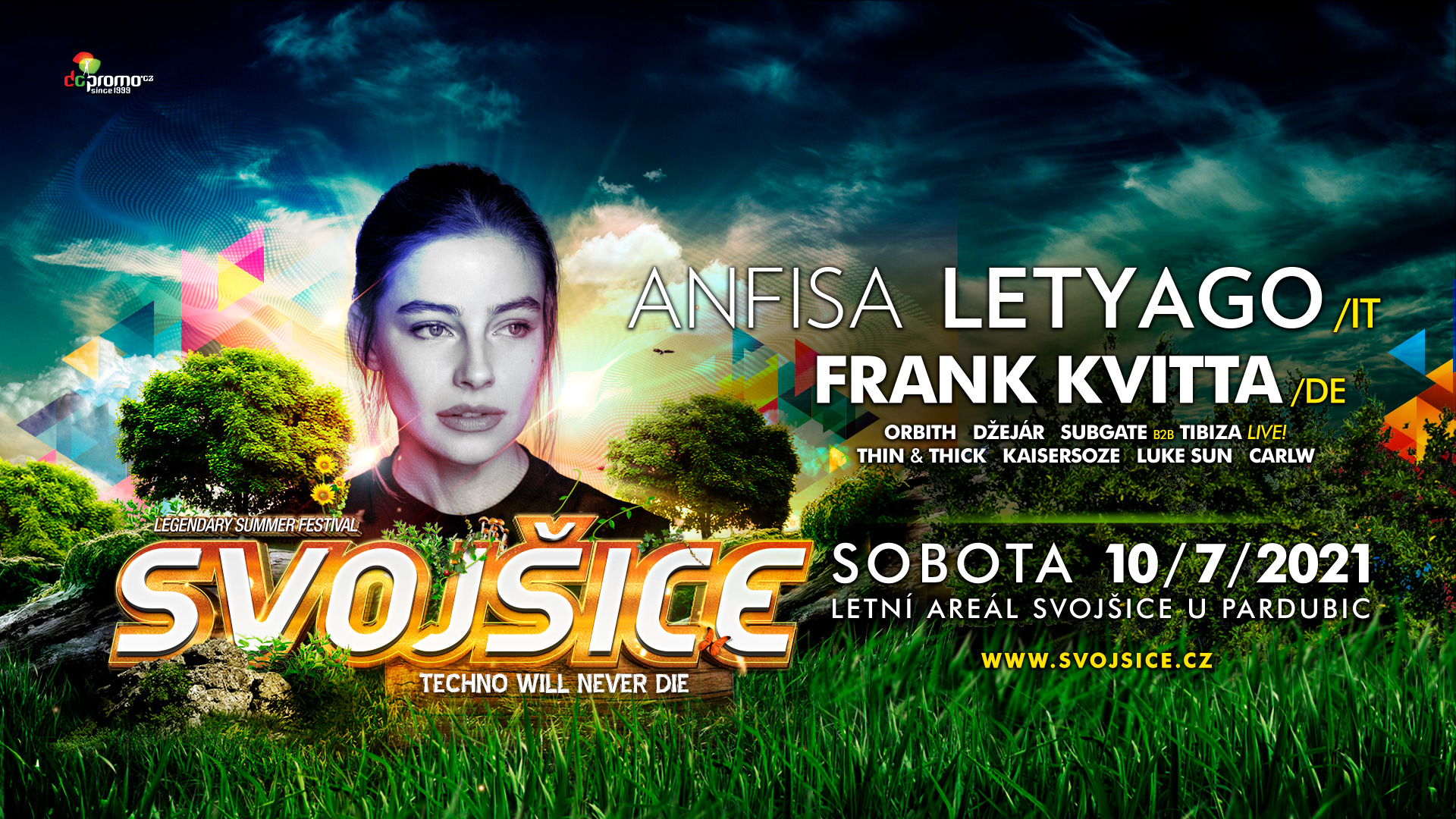 Do přírodního areálu ve Svojšicích u Pardubic zavítá již v sobotu 10. července italská producentka a dýdžejku Anfisu Letyago, která zažívá doslova snový rok. Založením vlastního labelu N:S:DA. a vydáním EP s názvem Listen jen potvrdila pozici jednoho z největších nových talentů na techno scéně a po boku jmen jako Amelie Lens, Charlotte de Witte nebo Nina Kraviz začíná rychle obsazovat line-upy předních světových festivalů.