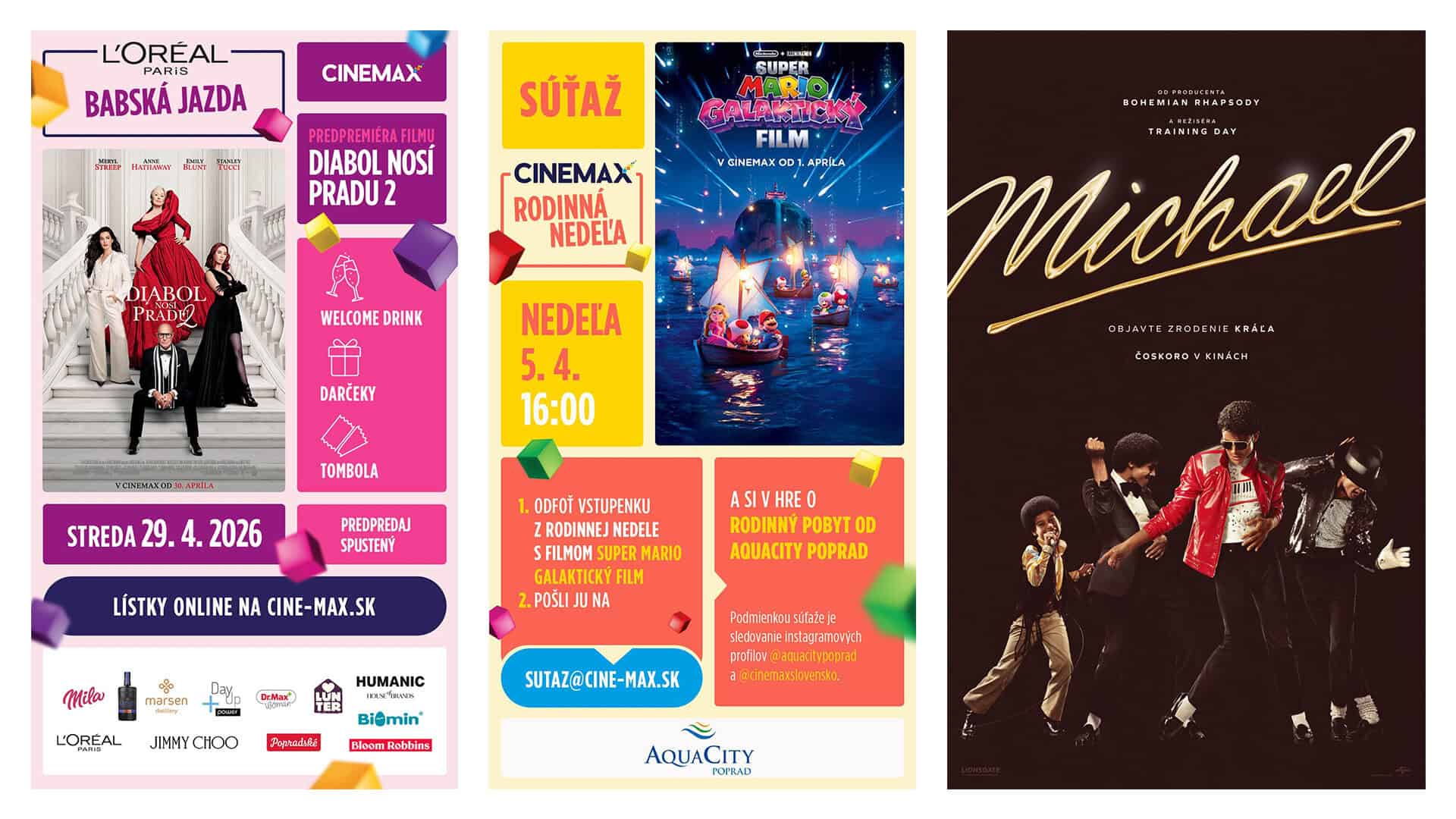 Počas apríla sa na filmové plátna vracajú legendy. Tešiť sa môžete na známu postavičku Super Maria, pop legendu Michaela Jacksona aj módnu ikonu Mirandu Priestly. Okrem toho CINEMAX chystá špeciálne projekcie k Svetovému dňu povedomia o autizme.