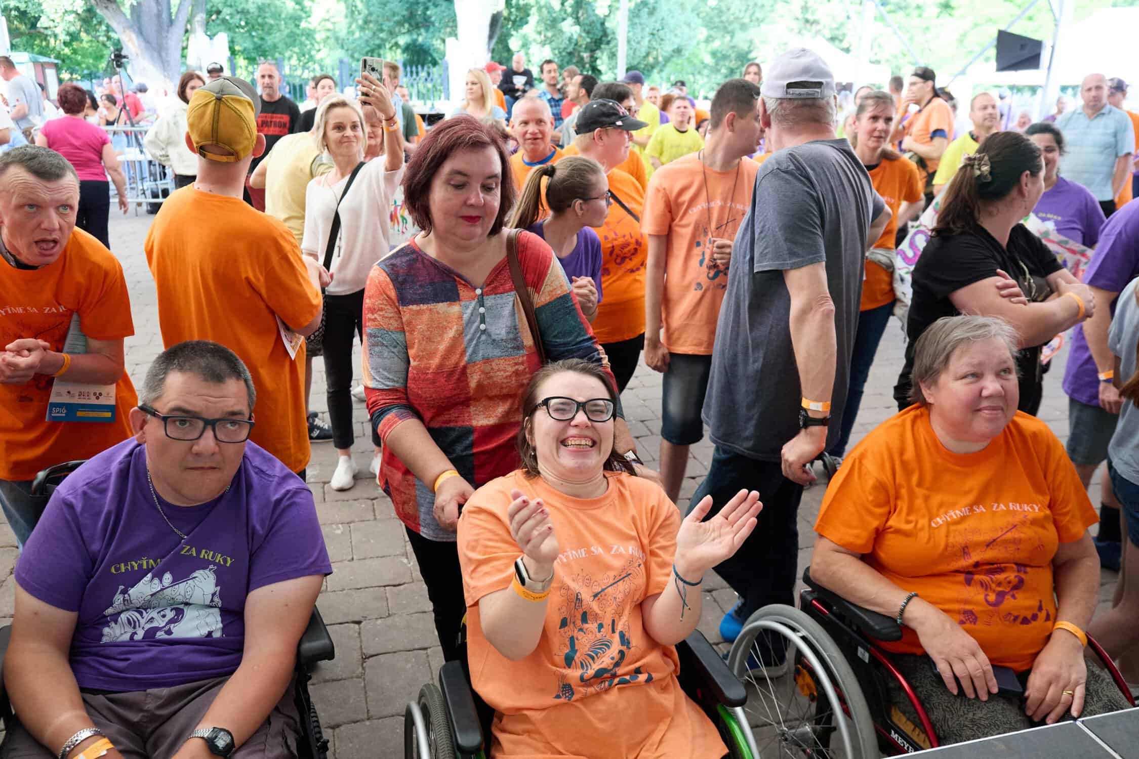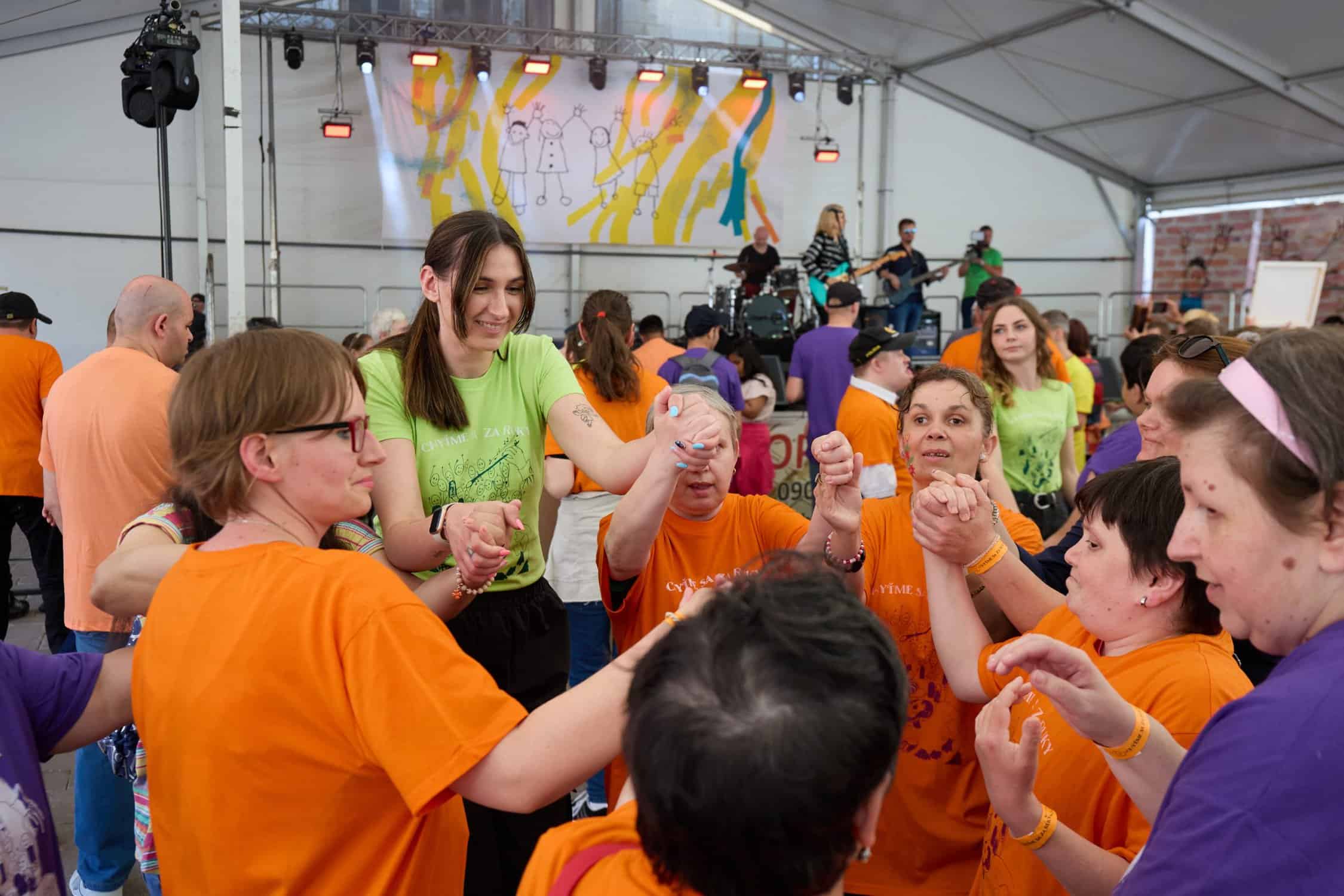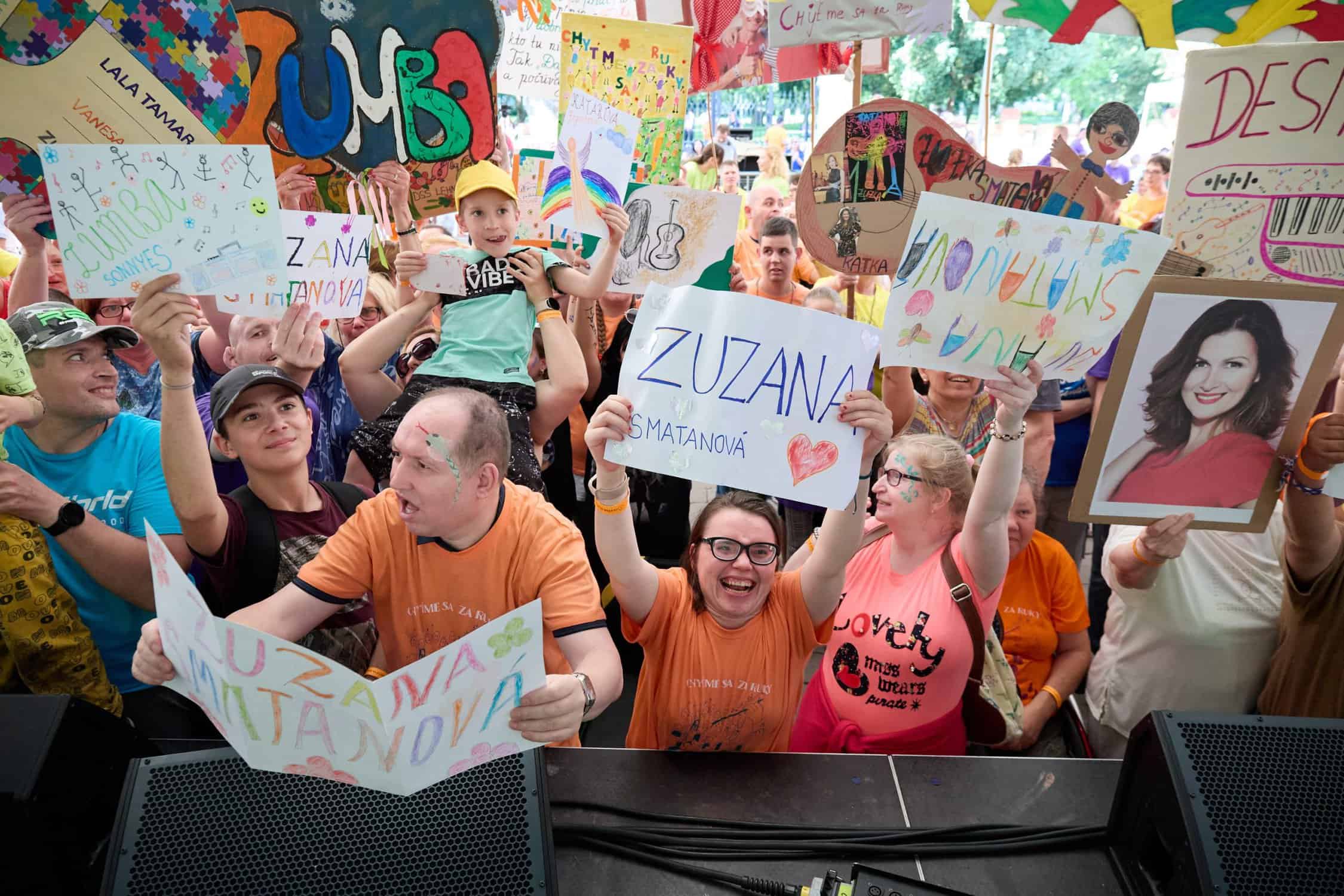 S príchodom prvých „inak obdarených“ sa na pódiu objavujú farebné tričká. Z reproduktorov znie lákavá latino hudba. A moderátorka Katka Brychtová uvádza prvého účinkujúceho. Dobrú náladu prichádza v úvode rozprúdiť Zumba Sonnyes so svojimi dievčatami. „My už sme tu v podstate ako rodina. Sme tu doma s tými detičkami. Každý rok tu prídeme. My už vieme, do čoho tu ideme. S veľkým srdcom. A my ich proste ľúbime takých, akí sú.“ Hudba a tanec sú univerzálnymi jazykmi a preto nie je výnimočné, že o chvíľu sa to pod pódiom už vlní farebnými tričkami a rozžiarenými tvárami. Roztlieskame sa a ideme tancovať. Krok vpred. Krok vzad. Teraz do strán. Ruky nad hlavy. Poskočíme si. Otočka. Ruky vbok. A ešte raz si zatlieskame. „Taká vďačnosť vo mne zostala, stále väčšia a väčšia. Že ďakujem za to zdravie, za život, za mobilitu. Že proste môžem zase ja, ako zdravý človek, takto priniesť energiu týmto ľuďom. Pomáhať im týmto spôsobom s mojimi dievčatami.“ Odmena od „inak obdarených“ putuje k Soničke. Darčeky výnimočné. Sami ich vyrobili a vložili do nich svoje srdiečka.