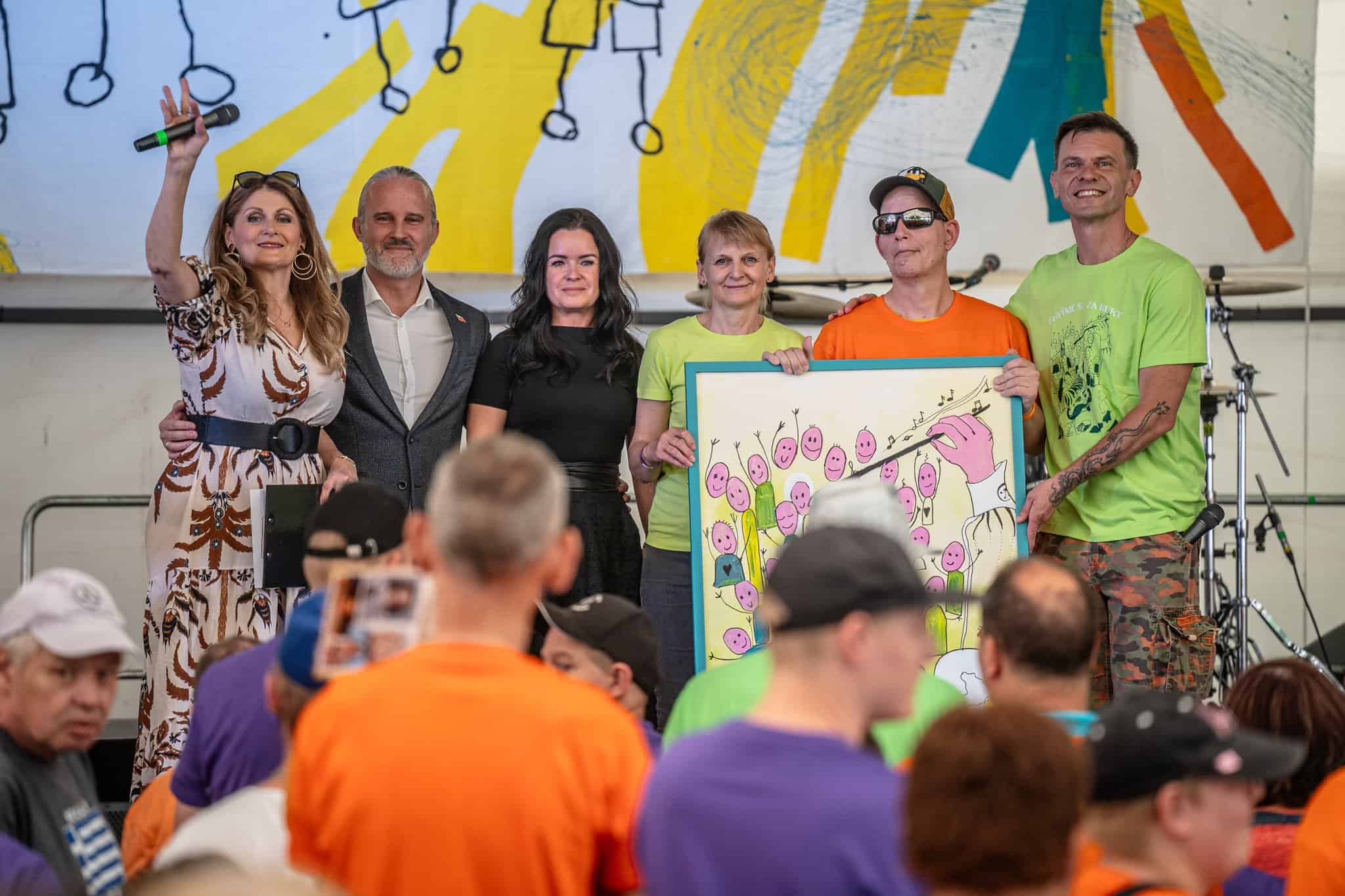 Na pódiu sa znova objavuje Katka Brychtová a prihovára sa prítomným. „Ja sa veľmi teším, že takéto podujatia existujú, preto že je naozaj výnimočné, aby takéto decká a mladí boli v bezpečnom prostredí, kde pre mňa je úžasné sledovať, ako sa bavia.“ Neostáva dlho sama. Pozýva si k sebe primátora mesta Galanta, Mgr. Petra Koleka. „Je to veľká česť pre naše mesto, lebo „inak obdarení“ ľudia si to určite zaslúžia.“ Pozýva i predsedkyňu komisie kultúry, Martu Vajdovú, predsedkyňu Občianskeho združenia Návrat do života v Galante, pani Betku Molnárovú a organizátora za Občianske združenie Milana Štefánika. Všetci sa krátko prihovorili. Na Betku Molnárovú a Milana Štefánika čaká ešte milá povinnosť. Odovzdať obraz s motívom tohtoročného podujatia. Obraz namaľovala maliarka Henrieta Rojková. Prevziať si ho prichádza Róbert Anger-Majer a DSS Šoporňa – Štrkovec. Určite bude peknou spomienkou na dnešný koncert.