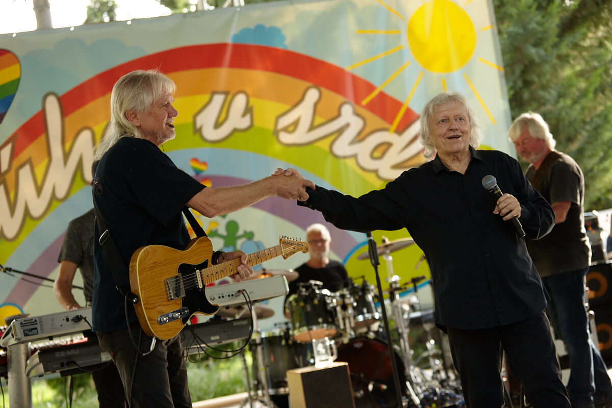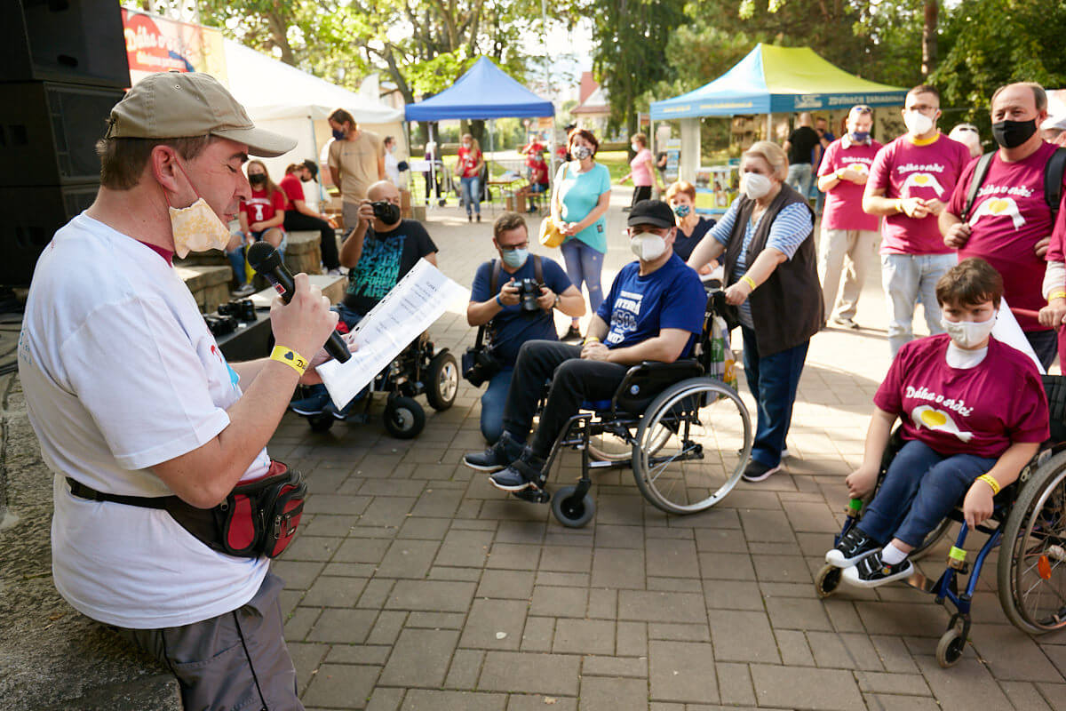 Tanečné kroky si odskočil z parlamentu vyskúšať i Jožo Pročko. Chopil sa moderátorského žezla a privítal všetkých. „Skvelá akcia pre tých, ktorí to najviac potrebujú.“ S Milanom Štefánikom pripomenuli pravidlá, ktoré platia. R-O-R. Dezinfekčná hliadka pripravená. Rúška na tvárach. Úsmev v očiach. Protiepidemiologické opatrenia prišli „narušiť“ Bacily. Z Čiech dorazili i s lídrom Václavom Neckářom. Prekročil už 55 rokov na hudobnej scéne. Malý muž s veľkým srdcom. S hlasom, čo pohladí dušu. Kapela Bacily – päťdesiat rokov na scéne. Päťdesiat rokov fanúšikov. Päťdesiat rokov piesní. Hitov. XY vystúpení pre „inak obdarených“. „Je to potřeba. Proto, že nás to baví, dělat tuhletu práci. A je úplně jedno, pro koho to děláme. Dúležité je, aby i to publikum to bavilo. Když je to vzájemné, tak si múžeme předávat energii a dobrou náladu.“ I tieto slová odzneli z úst členov kapely. Na pódiu rozbalili hudobný darček starších i nových piesní. Kto by si nepamätal Tu kytaru jsem koupil kvúli tobě, Stín katedrál či Kdo vchází do tvých snú. Symbolicky si podali ruku a previedli piesňou prítomných starým Václavákom. Harmonika. Publikum sa zapojilo. Dam-di-dam. Lásku ztracenou „našla“ naša šílene smutná Sonička z realizačného tímu. A i keď Časy se mění, každý má toho svojho Anděla strážneho. Baladicky krásna a moja obľúbená Púlnoční. I keď ešte nie sú Vianoce. Ruky nad hlavy. Tichá gitara a s ňou životný príbeh…Všechno je jenom jednou. A odkaz od Václava pre všetkých: „Nelituj, nikdy nelituj!“ Aplauz a darčeky. Jeden špeciálny v podaní Juraja Kohútika z CSS pre mentálne postihnutých. Vlastná báseň pre toto podujatie. Jožo Pročko dojatý. Veď s Jurajom sa pozná už nejakých pár rôčkov. Tak si live vymysleli ešte jednu slohu spolu.