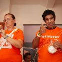 Krátka prestávka na výmenu nástrojov. Aj tú treba využiť. Pripomenúť občerstvenie. A predstaviť dezinfekčnú hliadku. V červených tričkách sa tu medzi vami pohybujú Veronika, Lenka a Sonička. Po schodoch do sály zas vozíčkárom pomohli schodolezy od spoločnosti SPIG. Monika Ponická vám rada poradí, ako si pomôcky vybaviť.
