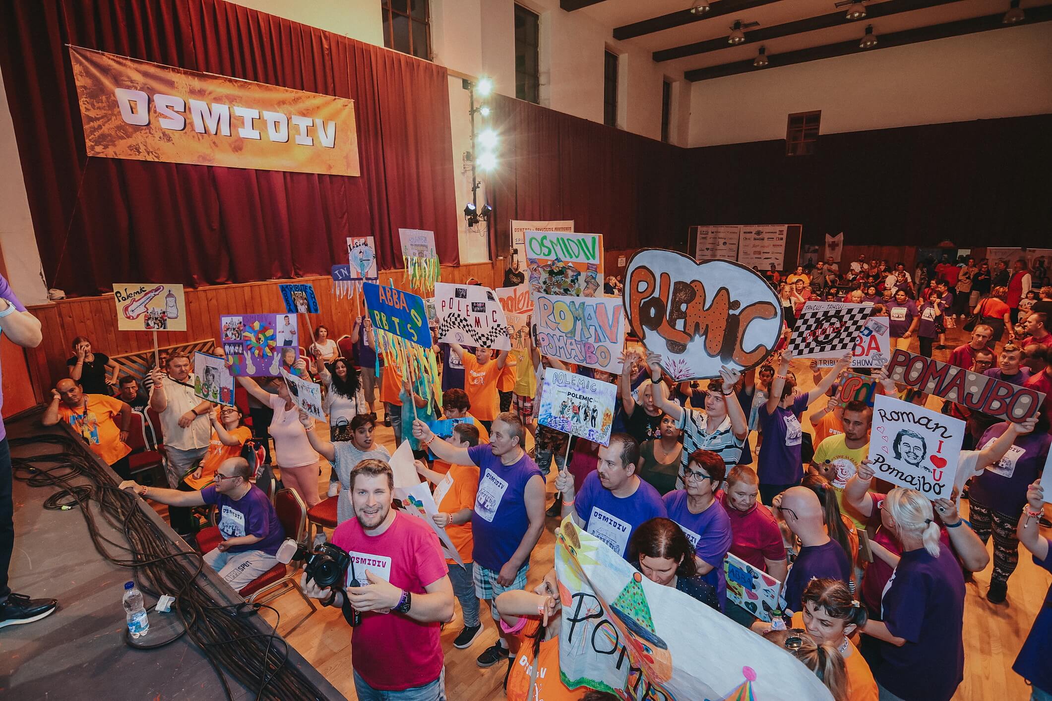 Ale už sa tešíme na hudobných hostí. Kto dnes vystúpi ako prvý? Bubny, gitara. Jemné tóny trúbky. Saxofón. Prichádzajú muži v čiernom. Polemic. Slovenská Ska/reggae skupina. Termín Osmidivu sa takmer trafil na narodeninovú oslavu lídra skupiny, speváka Braňa Bajzu. „Po tom mojom úraze som to tak viacej precítil to, že som s nimi viac menej handicapovaný a sme tak na jednej lodi spolu si preplávali tento koncert . Tak o to viac som to teraz pochopil, prečo to tak intenzívne vnímali.“ S prvými tónmi prichádza pozvánka. Tancuj. Bav sa a tancuj. Hanbu preč, rob čo vieš, nič nerieš, tancuj. Diváci sa nenechajú dlho prosiť. A už zaplavujú parket farebné tričká. Medzi „inak obdarených“ púšťajú svoju Medicínu – dobrú náladu, ktorá je najlepším liekom. Spolu si dali i hej-hou-hej-hou. Bubon a saxofón. Nie je to žiaden Škandál, že máme dnes Slnko v sieti. „Je to jedna z tých najúprimnejších akcií, ktoré zažívame. Tie decká to majú v podstate taký ten svetlý bod možno v tom celom roku , že dôjdu známe kapely si zahrať, podať ruky a reakcia toho publika je iná ako všade inde. Ja to volám že extrémna srdečnosť.“ Ona je taká. Ideme spolu. 2 kroky na stranu a hore noha. Nesmie chýbať Komplikovaná. Možno aj preto sú v kapele samí muži. Publikum už zaplnili farebné transparenty, mávadlá. A reakcia kapely na ne? „Mali mnohé transparenty Polemic. A keď som na nich čo i len žmurkol, alebo niečo, tí ľudia boli úplne nadšení.“ Potlesk a už sú tu darčeky. Od „inak obdarených“. Sami ich pripravili.