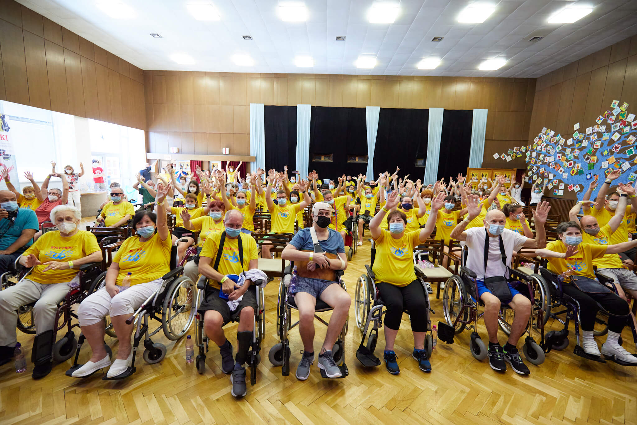 Sálu začali postupne zapĺňať krásne žlté tričká, ktoré symbolizovali veselú letnú pohodu. Do rovnakého sa obliekol aj Andrej Bičan, moderátor podujatia. Keďže pozvanie prijal s vďakou, od prvého momentu odovzdával z javiska smerom k publiku úžasnú pozitívnu energiu. Hneď v úvode si k sebe pozval Milana Štefánika, aby riaditeľke NRC, Ing. Oľge Zábojníkovej, odovzdali obraz, ktorého fragment – otlačky rúk, sa stal motívom podujatia. Dielo je o to zaujímavejšie, že samotná autorka, Paulínka Csápaiová Triščová, má handicap. Ruky totiž namaľovala na plátno nohami.