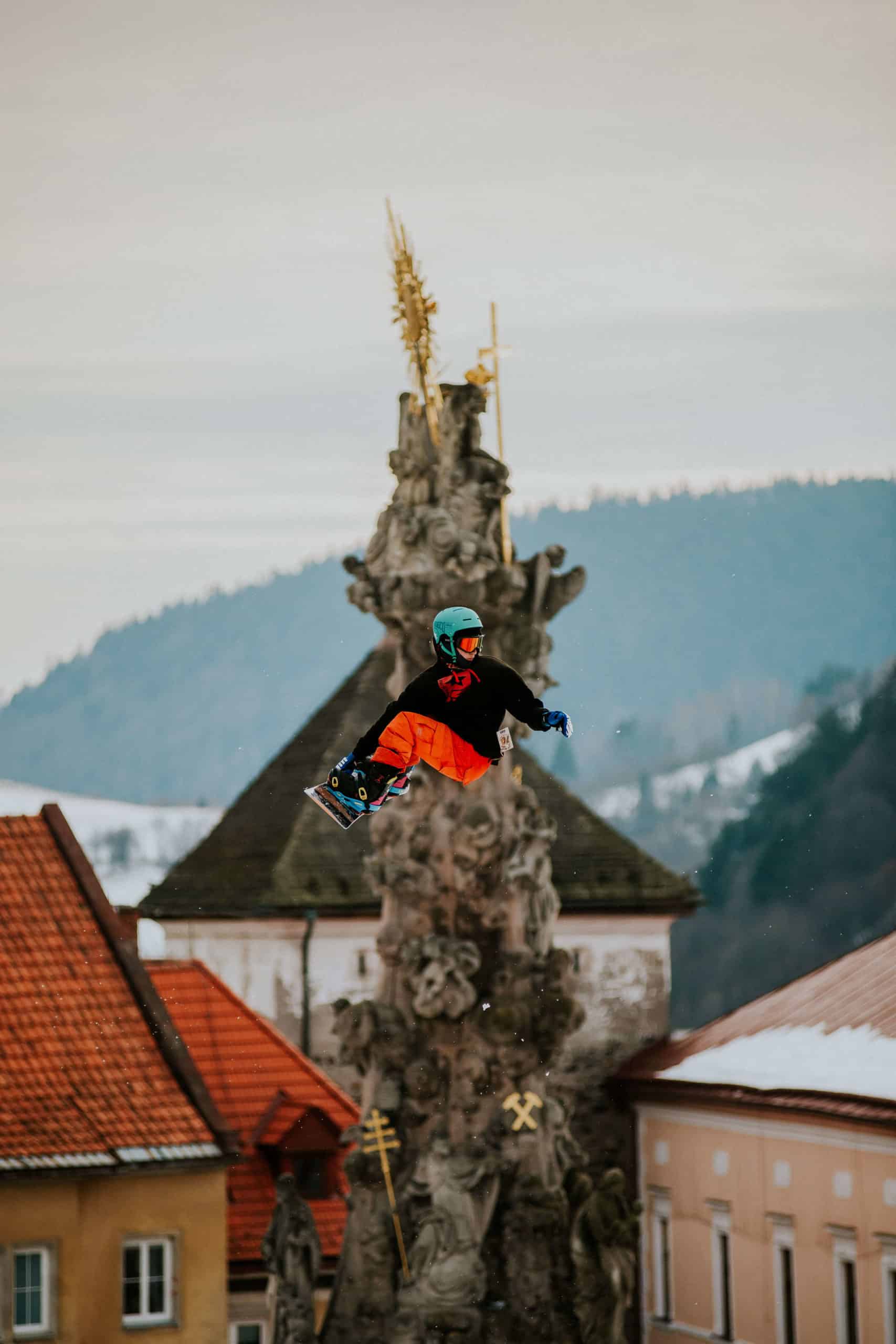 Uprostred kremnického námestia, niekde medzi morovým stĺpom a kostolom stojí obrovská kopa snehu. Aj tá už dostáva pod ťarchou bagra presné kontúry dopadu skoku. Povyše, medzi dvomi bránami stojí 12-metrová veža, z ktorej sa budú snowboardisti a freestyle lyžiari rozbiehať.