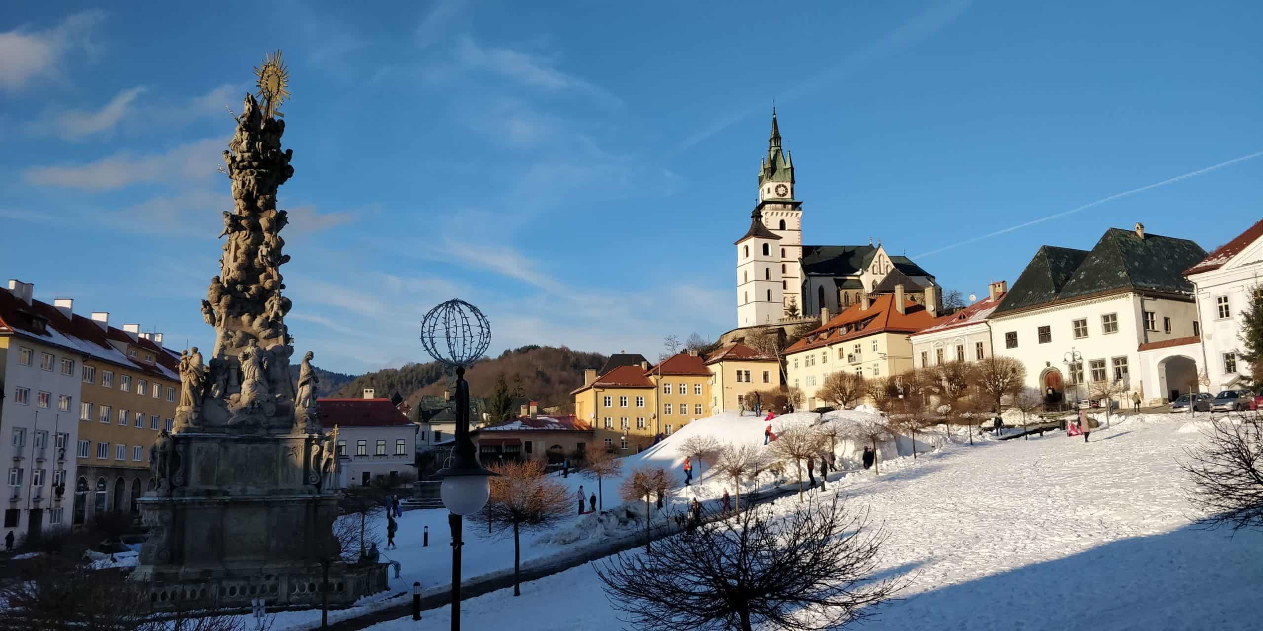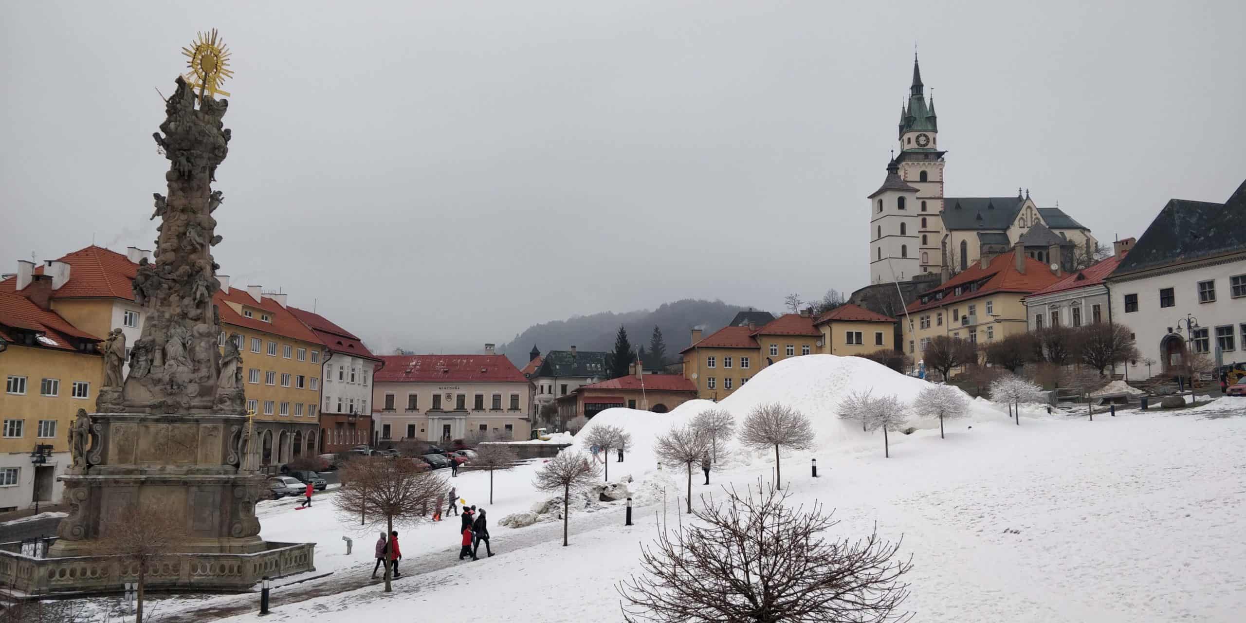 Mnohí sa pýtajú, aké snehové podmienky ich v Kremnici čakajú. Hoci snehu všade ubúda, v Kremnici je to naopak. V historickom centre nájdete poriadnu kopu snehu a námestie plné sánkujúcich sa detí.