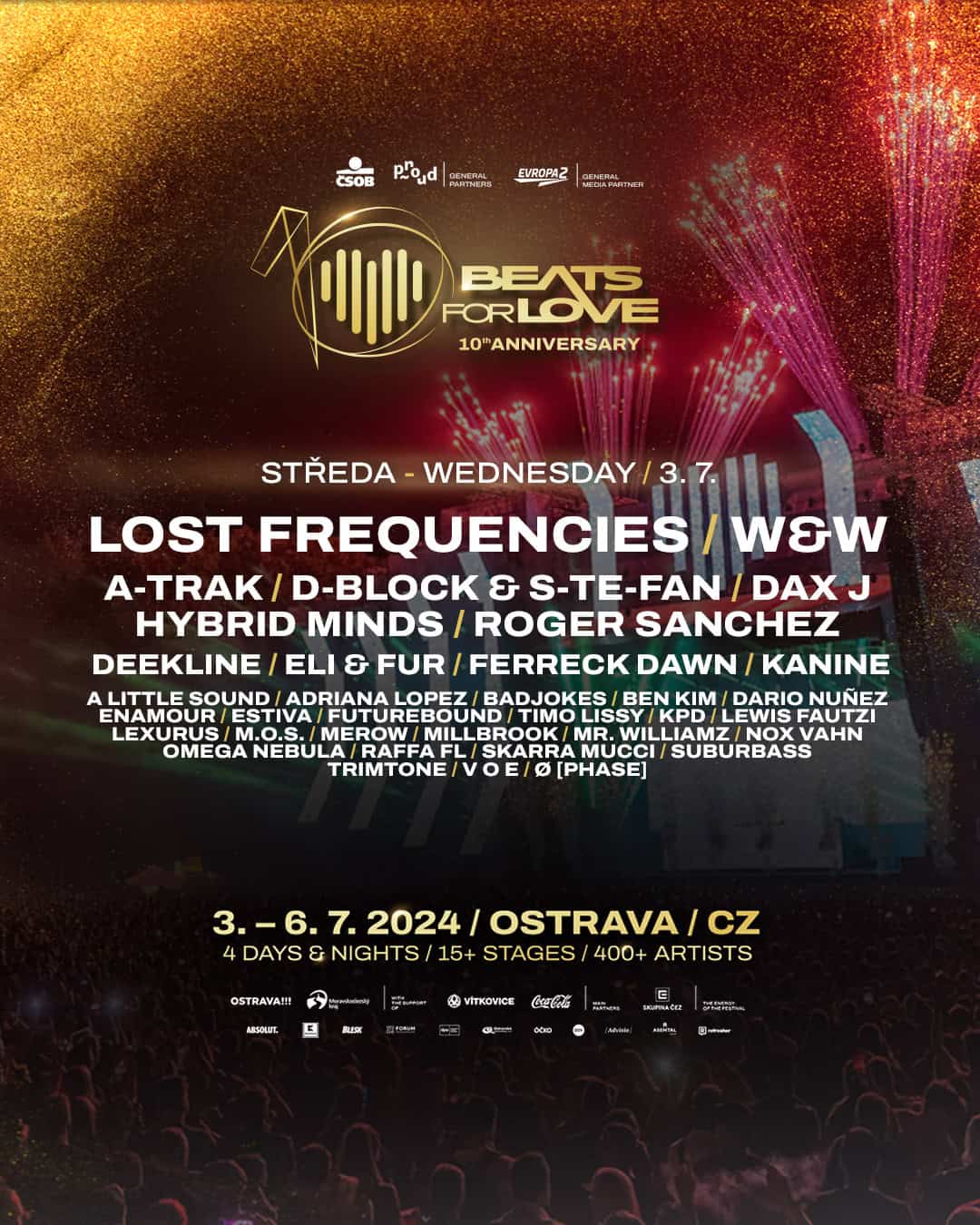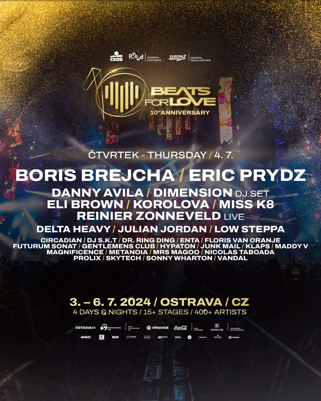 Jubilejní 10. ročník festivalu Beats for Love se blíží raketovou rychlostí. Na začátku července festival rozproudí život v populární ostravské oblasti Dolních Vítkovic. Svým nabitým line-upem organizátoři nenechají v klidu žádného nadšence do elektronické taneční hudby. Aktuálně je navíc k dispozici kompletní seznam a denní line upy všech zahraničních hvězd, které na akci vystoupí. A je to doopravdy přehlídka jmen světových formátů!