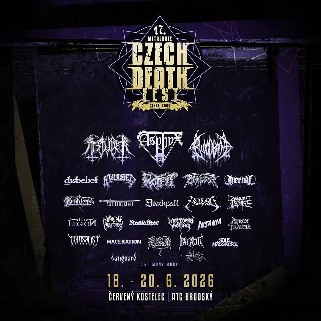 Line-up MGCDF 2026: ABRUPT DEMISE, ASPHYX, ATROX TRAUMA, AVERNAL, AVULSED, BJES, BLOODBATH, COLOSALIST, DARKFALL, DISBELIEF, FATALITY, FLESHLESS, FRACTURATED INSANITY, HORRIBLE CREATURES, INSANIA, MACERATION, MELANCHOLY PESSIMISM, RADIATHOR, REDZED, ROTPIT, SHINIGAMI, SOUL MASSACRE, THY LEGION, TORTHARRY, TSJUDER, VANGUARD a mnoho dalších