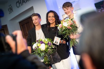Lucie Bílá pokrstila album Až ke hvězdám nealkoholickým šampaňským. „Naozaj v tom nie je alkohol?“uisťoval sa ešte 14-ročný Ben, než sa napil a jeho zodpovednosť vyvolala spontánny smiech. Partner krstu, stavebná spoločnosť Kis Kis Fortuna, navyše prišla s ďalším prekvapením pre Bena a Matea – darovala im obrovskú tortu s ich vlastnou fotografiou.