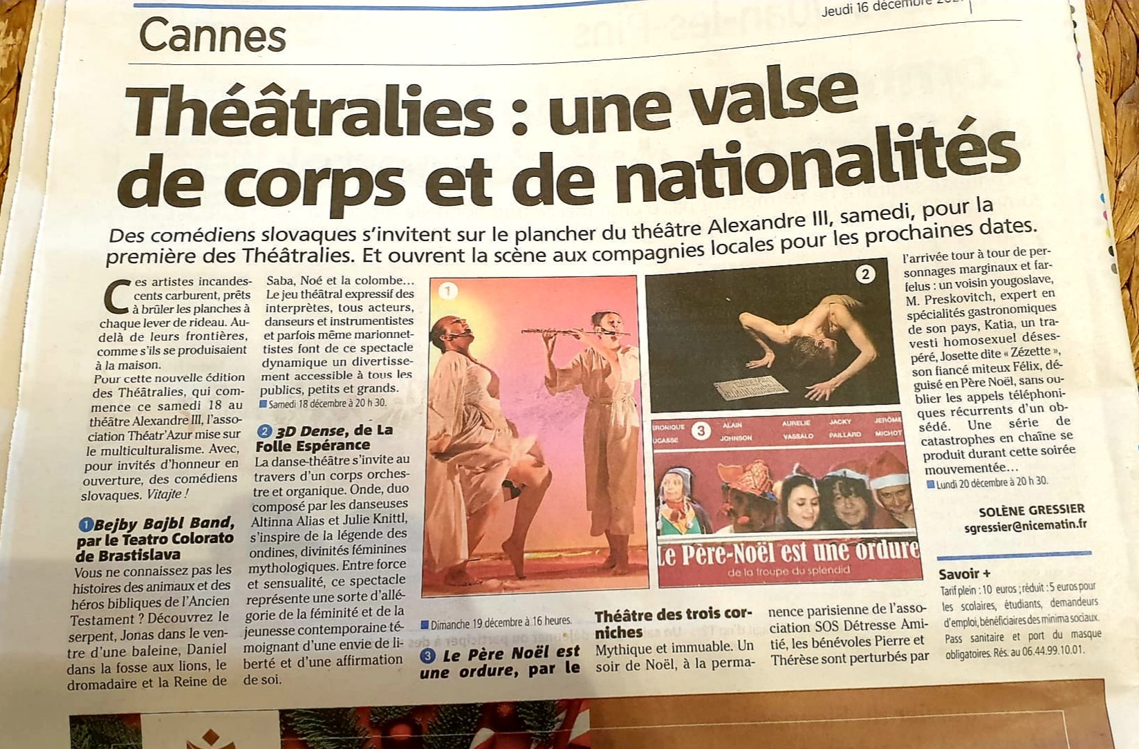 „Keďže fakticky od konca novembra boli divadlá na Slovensku pozatvárané a nedalo sa hrať, bolo to pre nás vytrhnutie z čierňavy. A to doslova. Počas celého zájazdu nám nádherne svietilo slnko, mali sme krásne južanské počasie, niektorí odvážlivci vyskúšali aj decembrové azúrové more. Ja som patril medzi nich,“ tešil sa talentovaný herec Peter Pavlík, ktorý hrá v inscenácii jednu z hlavných úloh.