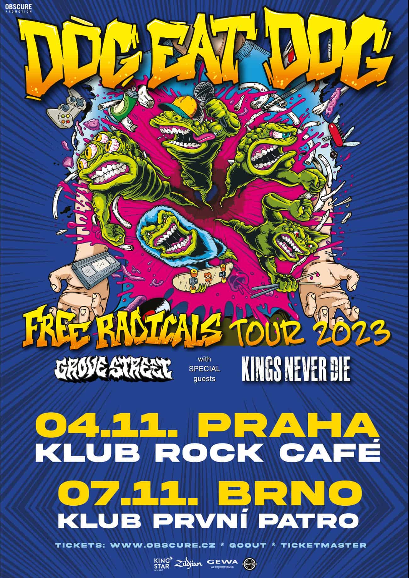 DOG EAT DOG se v 90. letech s vydáním své kultovní desky „All Boro Kings“ stali zásadní kapelou a charakteristickým odrazem své doby, kdy vládla svoboda, muzika a párty. Svůj původní entuziasmus si ale Američané uchovali dodnes a je ho plná i nová deska „Free Radicals“, která je po dlouhých 17 letech dalším dlouhohrajícím přírůstkem jejich diskografie. Tak v Praze a Brně!