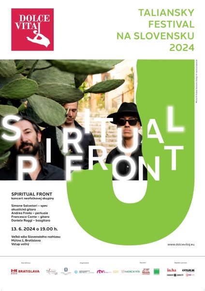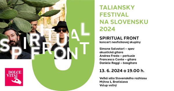Spiritual Front vystúpia 13.6.2024 o 19:00 vo Veľkej sále Slovenského rozhlasu na Mýtnej 1 v Bratislave v zložení: Simone Salvatori (spev, akustická gitara), Andrea Freda (perkusie), Francesco Conte (gitara), Daniele Raggi (basgitara).