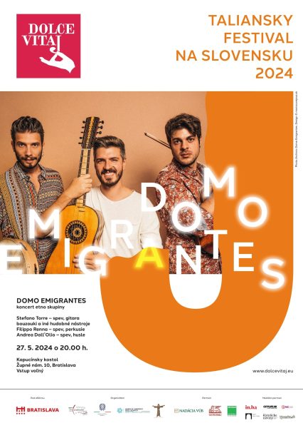17. ročník talianskeho festivalu na Slovensku Dolce Vitaj ponúkne dva výnimočné koncerty. Domo Emigrantes predstavia strhujúcu a energickú hudbu talianskeho juhu, druhý koncert bude patriť rímskemu neofolkovému kvartetu Spiritual Front. Festival Dolce Vitaj organizuje Taliansky kultúrny inštitút v Bratislave.