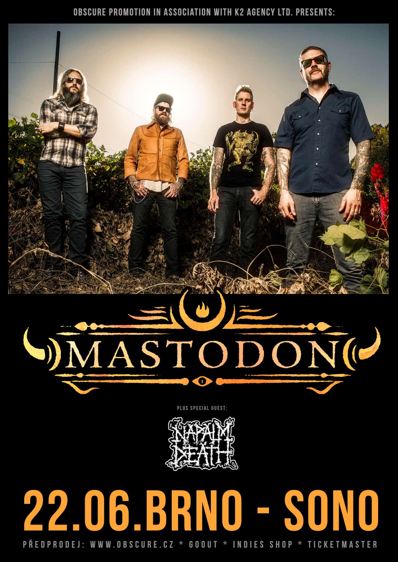 Letos to je 20 let, co se v jedné zkušebně potkaly čtyři tvůrčí osobnosti Brann Dailor, Brent Hinds, Bill Kelliher a Troy Sanders. Mimo jiných titulů za tu dobu stihli vydat sedm alb a nasbírat několikero ocenění vč. Grammy. A když se podíváte na roky vydání předchozích alb („The Hunter” 2011, „Once More ‚Round the Sun” 2014 a „Emperor of Sand” 2017), objevíte interval. Ano, uběhly tři roky a Mastodon by tedy „měli“ dodat novou desku. Ještě předtím se ale zastaví v brněnském Sonu, kde za asistence slovutných Napalm Death odehrají jednu ze svých dechberoucích show.
