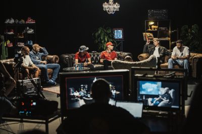 Pilotní díl talkshow se natáčel v ateliéru v Klecanech. Scéně dominují tři kožené pohovky pro hosty a chlupaté křeslo pro moderátora. Atmosféru dotváří poličky s artefakty, které k rapu neodmyslitelně patří – vinyly, oblečení, tenisky či boomboxy.