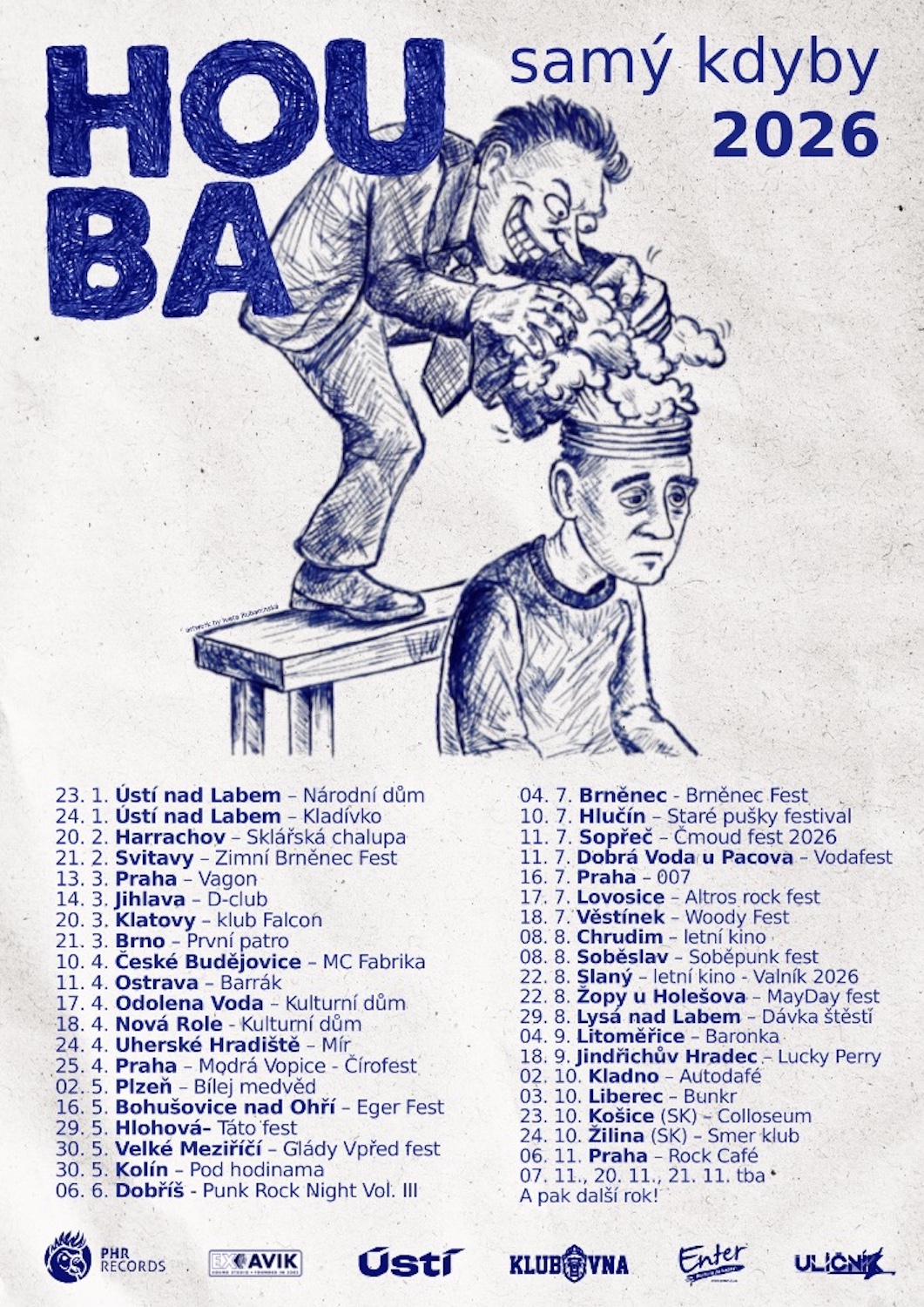 Houba má rok 2026 kompletně naplánovaný. Koncertní menu čítá téměř 50 akcí po Česku a 2 akce na Slovensku. „Nejedeme takové to tradiční české punkové tour, kdy se spojí víc kapel. Na podzim jsme zjistili, že nám je dobře, když se kolem nás kapely střídají. Nicméně pár akcí hrajeme společně s Vision Days, se kterými se známe od roku 1995, na podzim s Nežfaleš a s Jet8. S těmi posledně zmiňovanými chystáme tour v USA. Kdy to přesně bude, zatím řešíme“, dodává Martíček.