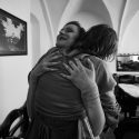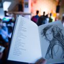 Dážď nám nezabránil odskočiť si do Art Cafe na čítačku. Tu už Robo Pospiš s moderátorskou podporou Dianky Mašlejovej prezentoval novú básnicko-výtvarnú zbierku Ukazuješ do tmy, vidím svetlo. Autorom kresieb je jeho dlhoročný priateľ, hudobník a výtvarník Roman Harvan. Okrem slov zazneli aj hudobné úryvky v podaní Roba Pospiša.