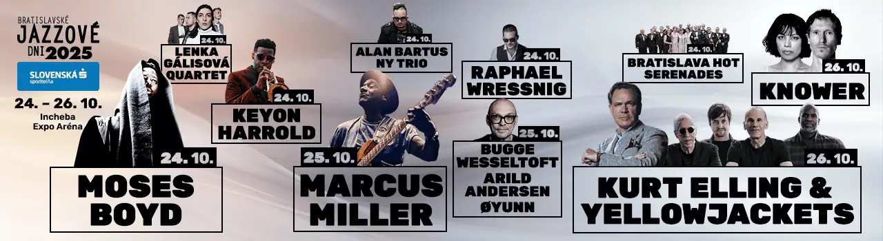Tohtoročné Bratislavské jazzové dni Slovenská sporiteľňa 2025 prinesú do Bratislavy to najlepšie zo svetového aj európskeho jazzu. Hlavnými hviezdami festivalu budú legendárny basgitarista Marcus Miller, ktorý predstaví svoj energický funk-jazzový projekt, a spevák Kurt Elling so skupinou Yellowjackets v jedinečnom programe Celebrate Weather Report, vzdávajúcom poctu ikonickej ére moderného jazzu. O explóziu zvuku, rytmu a humoru sa postará americké duo Knower, známe svojou nepredvídateľnou a výbušnou koncertnou show, ktoré v Bratislave vystúpi v 6-člennej koncertnej zostave. Nórska zostava Bugge Wesseltoft / Arild Andersen / Øyunn prinesie do Bratislavy severskú poetiku a prepojenie akustického jazzu s elektronikou, zatiaľ čo americký trubkár Keyon Harrold očarí emotívnou fúziou jazzu, soulu a hip-hopu. Moderný britský groove a elektronický puls súčasného Londýna potom prinesie Moses Boyd, jeden z najvýraznejších predstaviteľov novej generácie jazzmanov.