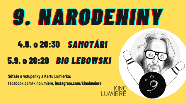 Svoje deviate narodeniny Kino Lumière oslávi uvedením dvoch kultových filmov. Pripravená je exkluzívna digitálna projekcia filmu bratov Coenovcov Big Lebowski (1998), ktorá má svojich skalných i stále pribúdajúcich divákov. Hlavným hrdinom tejto kriminálnej komédie je Jeffrey „Dude“ Lebowski, kráľ flákačov, nesmrteľná postava v podaní Jeffa Bridgesa. Životom prechádza pokojným tempom, v svojom charakteristickom župane, až do chvíle, kým sa do jeho bytu vlámu dvaja gangstri a ukradnú mu jeho milovaný koberec. Film Joela a Ethana Coenovcov je plný briskných dialógov a zábavných scén, nakrútený je s nadhľadom a iróniou.
