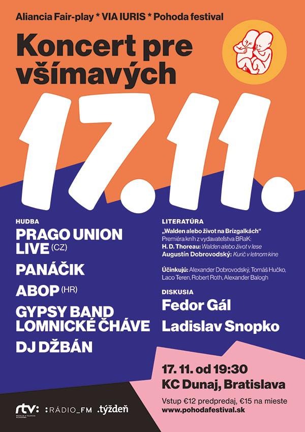Na Koncert pre všímavých a Deň bielych vrán vás pozývajú: Aliancia Fair-play, VIA IURIS, KC Dunaj a festival Pohoda.