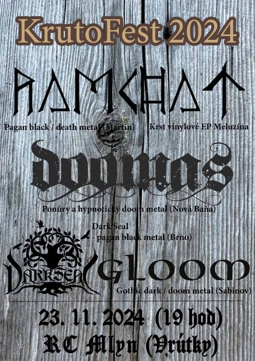 Martinská pagan black metalová kapela RAMCHAT pokrstí svoje nové vinylové EP „Meluzína“ 23. novembra na KrutoFeste 2024 vo vrútockom klube Mlyn. V spoločný večer s nimi ešte zahrá doom metalový DOOMAS, brnenskí pagan black metalisti DARK SEAL a gothic metalisti z Prešova GLOOM.