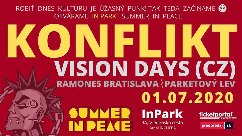 Zabaví Vás 30 ročná punková legenda KONFLIKT, official, ktorá si zavolala známych českých ska-punk bratov VISION DAYS. Program okorenia milovaný Ramones Bratislava a krásavci Parketový Lev.