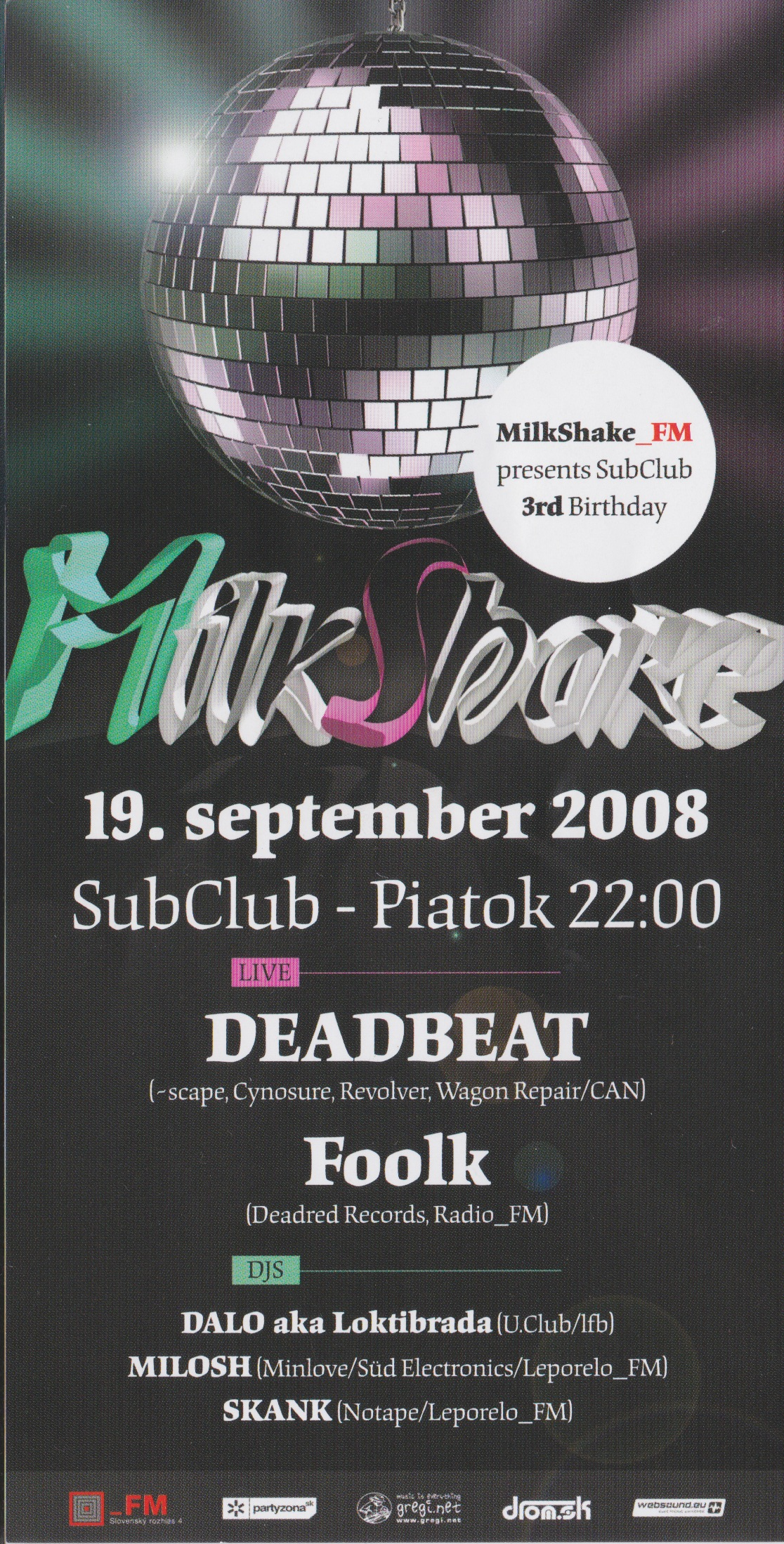 DJs: Milos, Skank, Baltazar, Pussy Kontrol, Bruyant + special guests