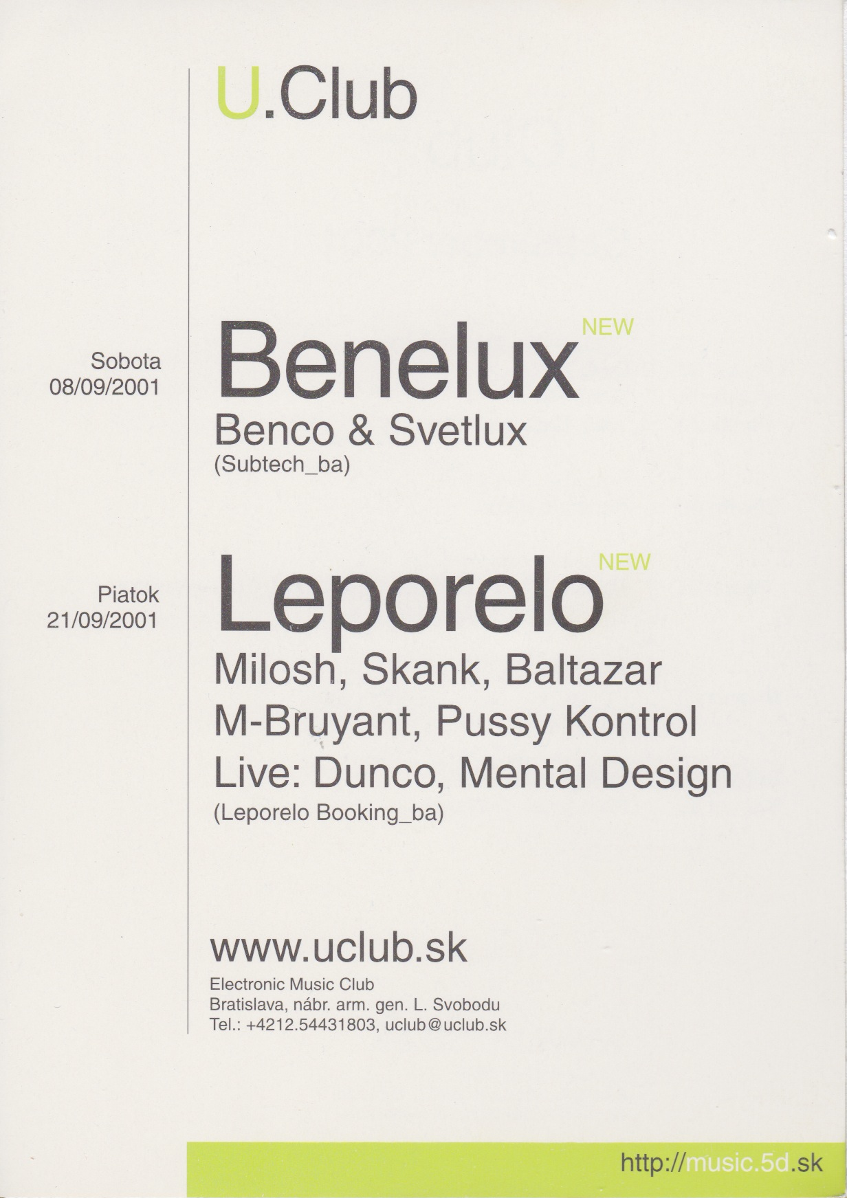 Keď sa v septembri 2001 rozrástol zoznam akcii v bratislavskom U.Clube o novinku s názvom Leporelo, nikto nemohol tušiť, že akcia tu bude aj po celých 20tich rokoch a zapíše sa do histórie klubových house & techno.