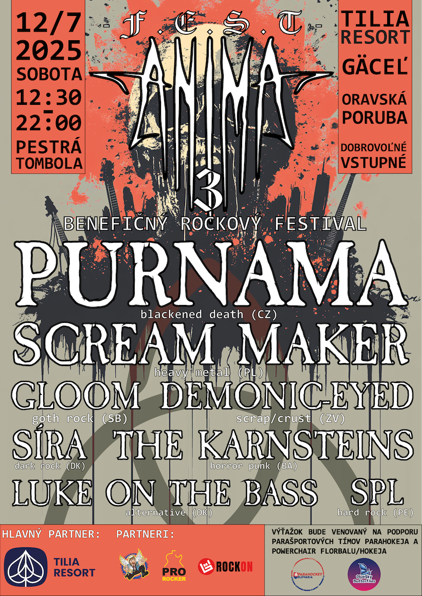 Anima Fest tento rok poctí svojou prítomnosťou osem kapiel. Lokálnu scénu zastúpia LUKE ON THE BASS a SÍRA. Okrem nich pozvanie prijali rockeri SPL, hororoví punkáči THE KARNSTEINS, obľúbení DEMONIC-EYED a gotickí melodici GLOOM. Po prvý raz sa na pódiu Anima Festu objavia aj zahraničné kapely. Budú to heavymetaloví SCREAM MAKER z poľskej Varšavy a česká blackened deathmetalová úderka PURNAMA.