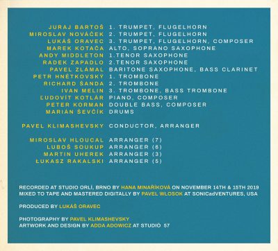 Významným aranžérskym vkladom prispel pôvodom ruský kontrabasista Pavel Klimashevski, ktorý sa ujal aj pozície dirigenta. Pozvanie k spolupráci prijal významný americký saxofonista Andy MIddleton, ktorý sa predstavil ako popredný sólista orchestra. Na albume spolupracovali domáci aj zahraničný aranžéri ako Miroslav Hloucal, Martin Uherek, Pavel Klimashevsky, Łukasz Rakalski a Luboš Soukup. Účinkujú: Juraj Bartoš, Miroslav Nováček, Andy Middleton, Pavel Klimashevsky, Marek Kotača, Radek Zapadlo, Pavel Zlámal, Lukáš Oravec, Petr Hnětkovský, Richard Šanda, Ivan Melin, Marián Ševčík, Ľudovít Kotlár a Peter Korman. Album je venovaný pamiatke člena orchestra, saxofonistovi Rostislavovi Frašovi.