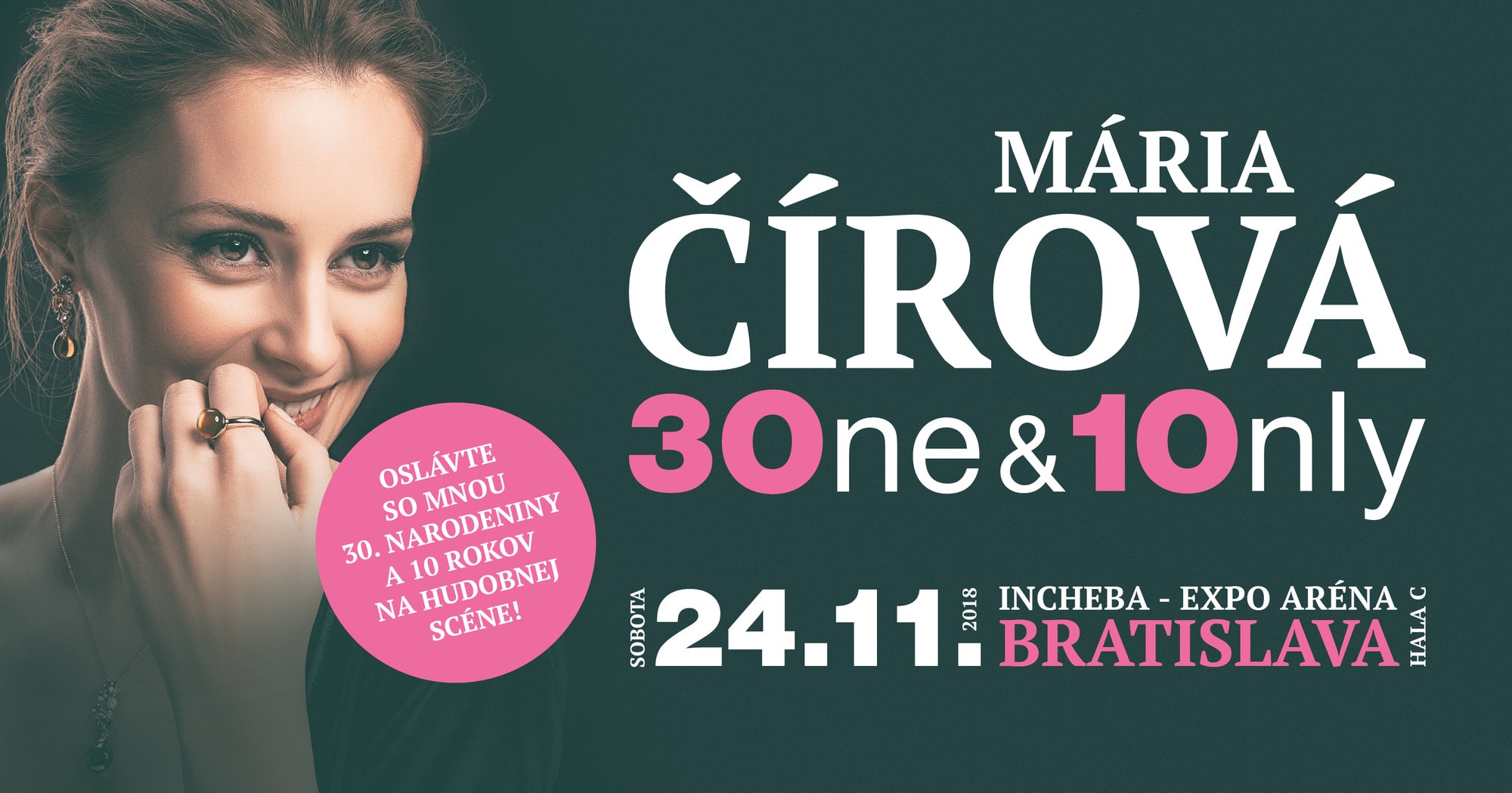 Záver roka taktiež absolvuje vo veľkom štýle – galakoncertom 3ONE & 1ONLY MÁRIA ČÍROVÁ, na ktorom oslávi už 24. novembra spoločne so svojimi fanúšikmi 10 rokov na hudobnej scéne a zároveň aj svoje 30. narodeniny. Vstupenky sú v predaji v sieti Predpredaj.sk: www.predpredaj.zoznam.sk/sk/listky/3one-1only-maria-cirova-2018-11-24/