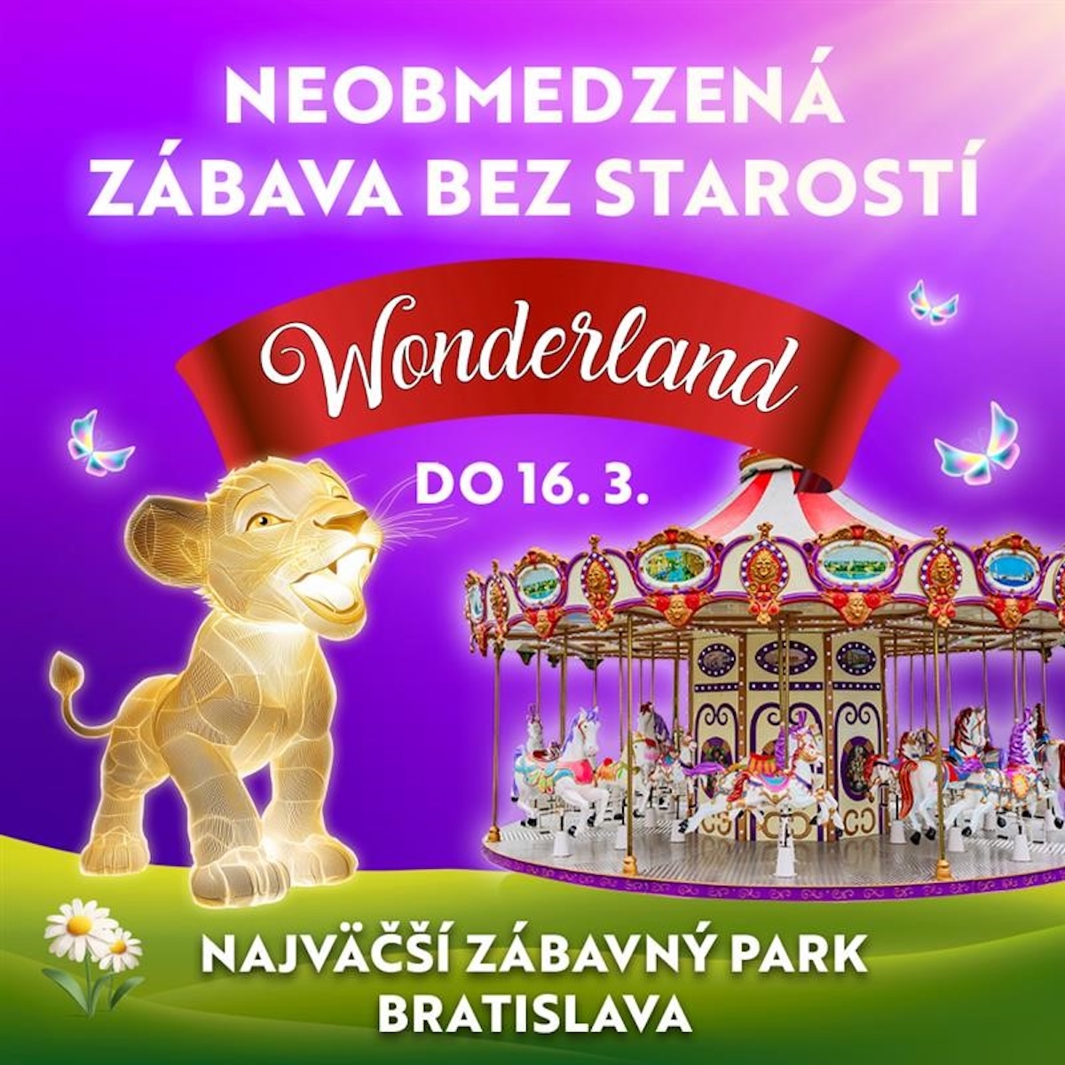 Zábavný park WONDERLAND na Dostihovej dráhe v bratislavskej Petržalke sa lúči! Nezmeškajte poslednú šancu zažiť vír zábavy, adrenalínu a kúzelných atrakcií. Všetky kolotoče máte už v cene vstupenky, stačí prísť a užívať si naplno! Zoberte rodinu či priateľov a prežite nezabudnuteľné chvíle plné smiechu a radosti. Od pondelka do štvrtka do 16-tej hodiny môžete prísť do zábavného parku za zvýhodnenú vstupenku Happy Hour 1+1 zadarmo a povoziť sa na kolotočoch neobmedzene celé popoludnie! WONDERLAND je otvorený každý deň do 16. marca!
