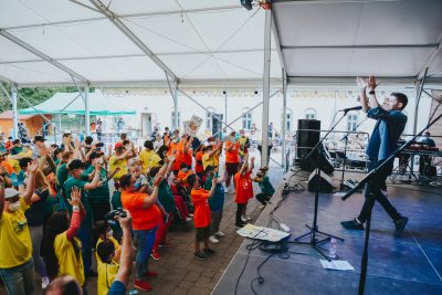 Dobrovoľníci venovali príprave už sobotné popoludnie. Pripraviť veľké pódium na nádvorí neogotického kaštieľa, to nie je len tak. Zavesiť bannery. Na rebrík – z rebríka. Možno i svalovica bola. Rozložiť stoličky pre divákov. V nedeľu ešte pripraviť miesto na občerstvenie. Kútik pre kreatívne dielne. Vyladiť techniku. A ide sa na to.