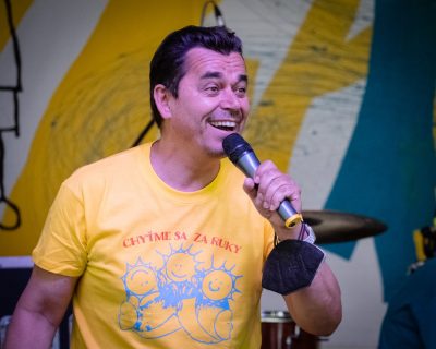 Pri vstupe čakala prichádzajúcich krátka kontrola. Teplota. Dezinfekcia rúk. Poďte si vybrať tričká. Pekné, farebné. Aby bolo veselo. Fotka pod plagátom. Ale to sa už ozývajú tóny lákavých latino rytmov. Na pódiu prvé kroky predvádza Zumba inštruktor Zoli. A netrvalo dlho, pridali sa farebné tričká. Krok vpred, krok vzad. Temperament. Pri tanci dostali prítomní výnimku. Rúška môžu ostať odložené. Ďalšie kroky. Nemusia byť perfektné. Dôležité je, že sa všetci bavia. „Užili sme si to. Roztancovali sme to. Sme radi, že sme tu urobili takú atmosféru.“ Zoli sa so svojimi dievčatami tešil, že konečne vymenili on line svet za ten „živý“. Otočka. Ruky hore. A prekvapko. K Zumbe sa pridal i Roman Pomajbo, moderátor podujatia. Jeho výkon ocenili tancujúci potleskom. „Mám radosť, že sa už konečne začíname tak socializovať. Že sa môžeme stretávať.“ Roman v úvodnom vstupe nezabudol hosťom pripomenúť pravidlá. Hneď si k sebe pozval zástupcov z organizačného tímu. Nádherný obraz od maliarky Henriety Rojkovej odovzdali Mgr. Hajdinovej, riaditeľke DSS pre deti a dospelých v Šintave. Od dnes bude zdobiť ich priestory.