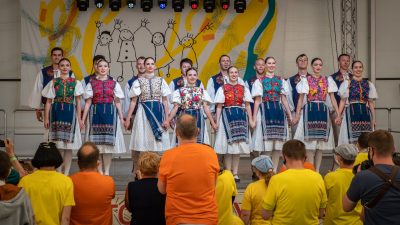 Pred posledným hosťom je potrebné upraviť pódium. Všetko musí preč. Chystá sa PUĽS. Profesionálne umelecké teleso „rozdáva“ bohatstvo Rusínov. Hudobné nástroje tento krát budú pri pódiu. Moderátor skúša publikum. Ktoré budeme počuť? Husle. Basa. Cimbal. Prvé zavlnenie farebnej sukne. Čižmy. Mašle vo vrkočoch. Dievčatá maľované. Primáš hraj. Folklór v scénickej forme. Tanečné sóla. Plné mužské hlasy. Zvonivé ženské. Zaspivajme sobi, Pila ja palinku. Pytačkový. Svadobná pieseň. Tanec s palicami. „Sú veľmi spontánni. Krásne reagujú. Tancujú. Tešia sa z každého tónu. Vedia prejaviť emóciu naplno, úprimne a to je veľmi milé. Takže nám sa veľmi dobre robilo.“ Publikum sa odvďačilo velikánskym potleskom.
