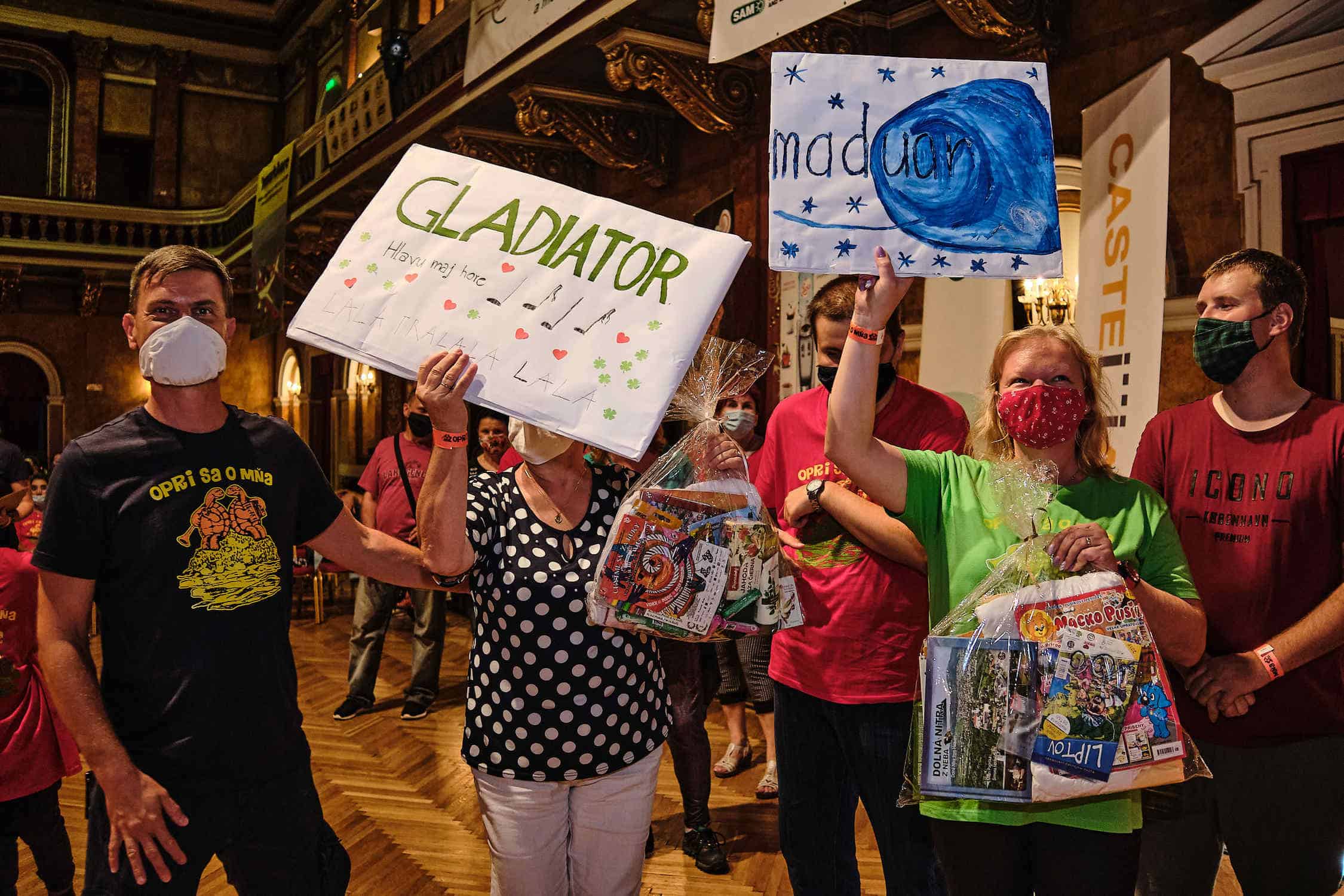 Všetko pripravené. Môže sa začať šou v podaní skupiny Maduar. Napriek náročnému sobotňajšiemu večeru – veľký koncert s hosťami, si urobili čas a prišli. „Sme radi, že sme mohli dôjsť. Keď človek príde na takúto akciu, tak si tak pripomenie, že je to super a najdôležitejšie je zdravie.“ Tento krát prišli bratia Ladislav a Juraj bez Ivanky Bagovej. Na parkete svojim dancefloorom rozprúdili pravý tanečný disco ošiaľ. Spev dopĺňali nápaditými choreografiami, ktorým neodolali ani dobrovoľníci a pripojili sa tancom vo vstupnej hale. Svoje piesne Náš čas, Anjel, Do It, Hafanana, Latino obohatili o mix slovenských hitov Po schodoch, Reklama na ticho, či O Maňo. Spolupráca publika bola perfektná i pri piesni I Feel Good. Hore ruky, tlesknúť. A čo hovoria bratia Matyinkovci na transparenty? „Je to taká milá nostalgická spomienka, premostenie do roku 1994, kedy sme dostávali do fanklubu práve takéto nápisy. A zároveň je to hodnotnejšie. Je v tom vložené také to srdce. O to väčšiu hodnotu to pre nás má.“
