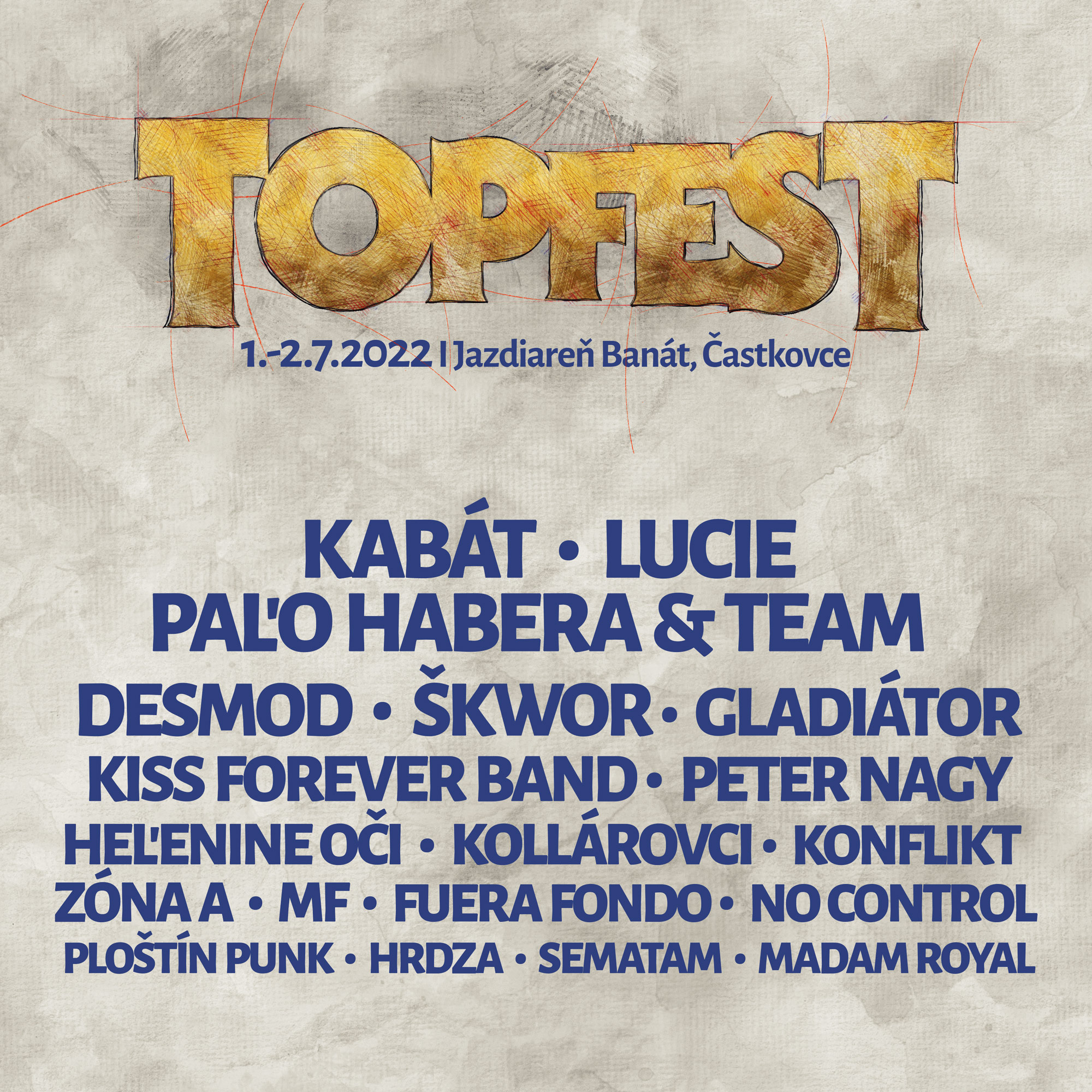 Príďte zažiť dokonalú festivalovú atmosféru na TOPFEST 1. –  2. júla 2022 v areáli Jazdiareň Banát v Častkovciach. Vstupenky sú dostupné v sieti Predpredaj.sk tu: https://predpredaj.zoznam.sk/sk/listky/topfest-2022/