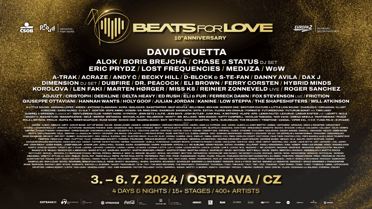 Přepište dějiny! Parafráze slavné hlášky komentátora Roberta Záruby je namístě. Beats for Love totiž slaví jubilejní 10. ročník a právě dnes, 3. července otevírá své brány. První kulaté narozeniny budou velkolepé – s nejnašlapanějším programem v historii v čele s francouzskou superhvězdou Davidem Guettou, novou podobou některých scén, spuštěním bezhotovostního systému plateb i výraznými změnami v areálu.