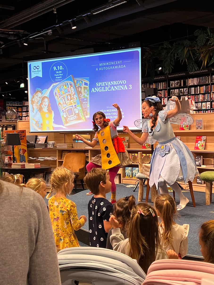 Najúspešnejší detský projekt Spievankovo pokrstilo nové DVD! Novinka Angličanina 3 je pokračovaním úspešnej série príbehov Víly Nezábudky a pojašenej Píšťalky Tidlalky, ktoré fantasticky stvárnili Mária Podhradská a Petra Dubayová. Na krste v kníhkupectve Panta Rhei v Auparku zahrali deťom minikoncert a nové DVD deťom aj podpísali. Získali si srdcia malých aj veľkých divákov, ktorí ich nechceli pustiť z pódia.