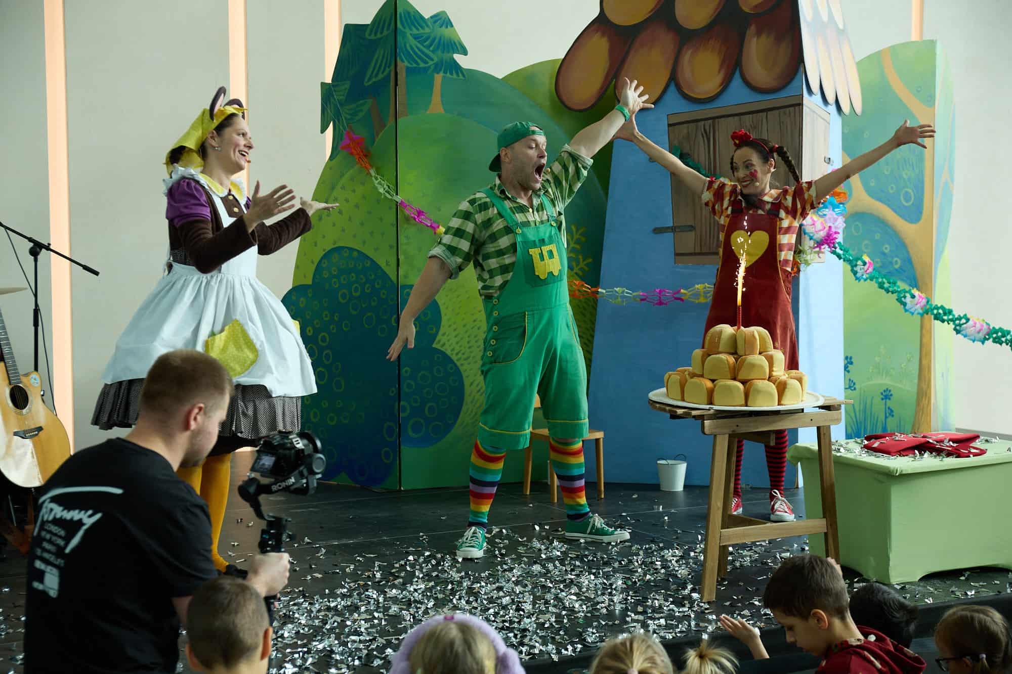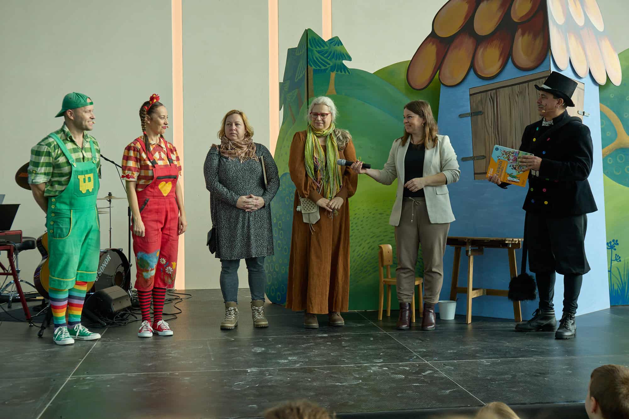 Na pódiu sa zišli autori piesní Mária Podhradská a Richard Čanaky a ďalší tvorcovia magickej publikácie – scenáristka, autorka všetkých vtipných dialógov a textov piesní Lenka Tomešová, výtvarníčka Kristína Hroznová, Katka Kočutová a Ivana Šulganová z vydavateľstva Albi. V novej knihe je vyše 60 nových piesní o povolaniach z autorskej dielne Márie Podhradskej a Richarda Čanakyho. Nájdete tam pesničku napríklad o semafóre, o umývaní riadu, o slušnom správaní, o liečivých bylinkách, o varení.