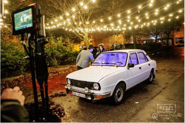 S: Luna poskytuje skvelé priestory a natáčali sme v taký deň a hodinu, aby sme neobmedzovali ich dennú prevádzku. Najviac sa mi páčili okrúhle boxy, ktoré vyzerali doslova ako vystrihnuté z pravého old school videoklipu. A samozrejme aj bar – zrkadlová stena plná fliaš bola dokonalým detailom. Aj samotný vstup bol do klipu vhodný, nakoľko sa v pozadí vyskytuje Hotel Kyjev. Všetko nám fungovalo ako hodinky a záberov máme taktiež dostatok, takže bolo z čoho vyberať!