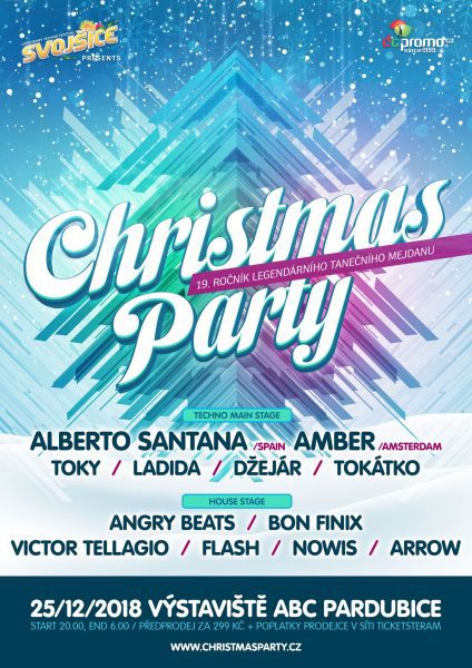 Vánoční tradice pro všechny, kteří si vybírají koledy hlavně podle BPM, je opět tady. Devatenáctý ročník legendární Christmas Party proběhne 25. prosince 2018 v klubu ABC, kde vystoupí kromě deseti domácích hostů také Alberto Santana ze Španělska a Amber z Nizozemí.