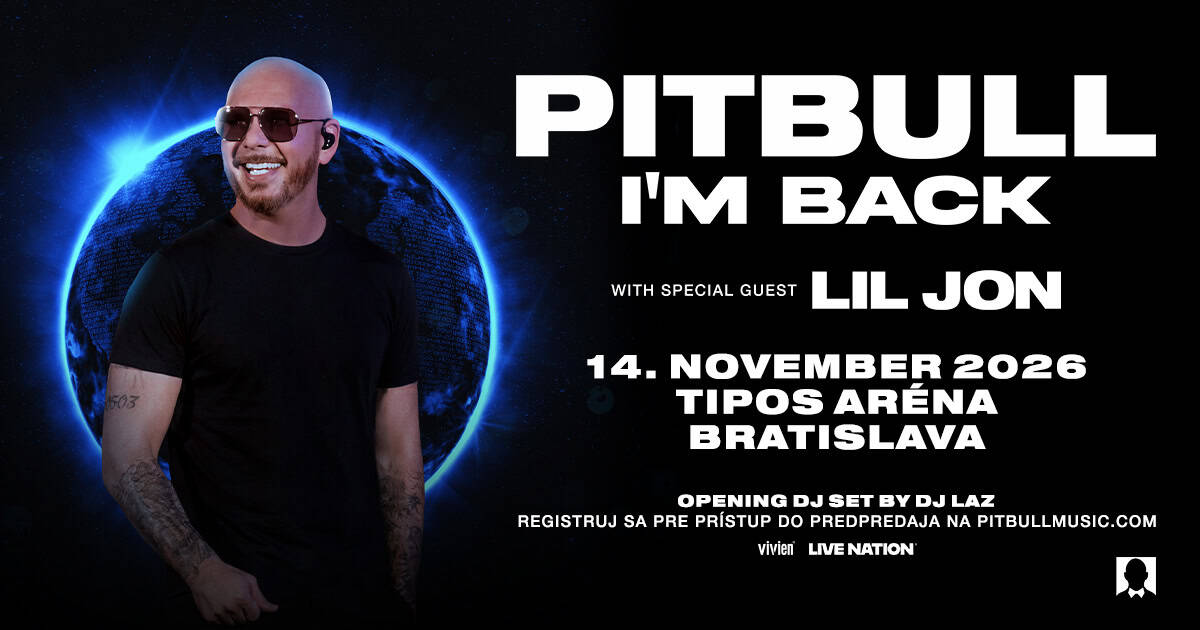 Svetová superstar Pitbull (Mr. 305 / Mr. Worldwide) prináša svoju energickú show späť do Európy. Pre obrovský záujem fanúšikov naprieč celým kontinentom pridáva nové arénové dátumy v rámci svojho masívneho turné „I’M BACK“. V bratislavskej TIPOS aréne vystúpi 14. novembra 2026.
