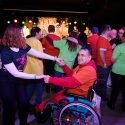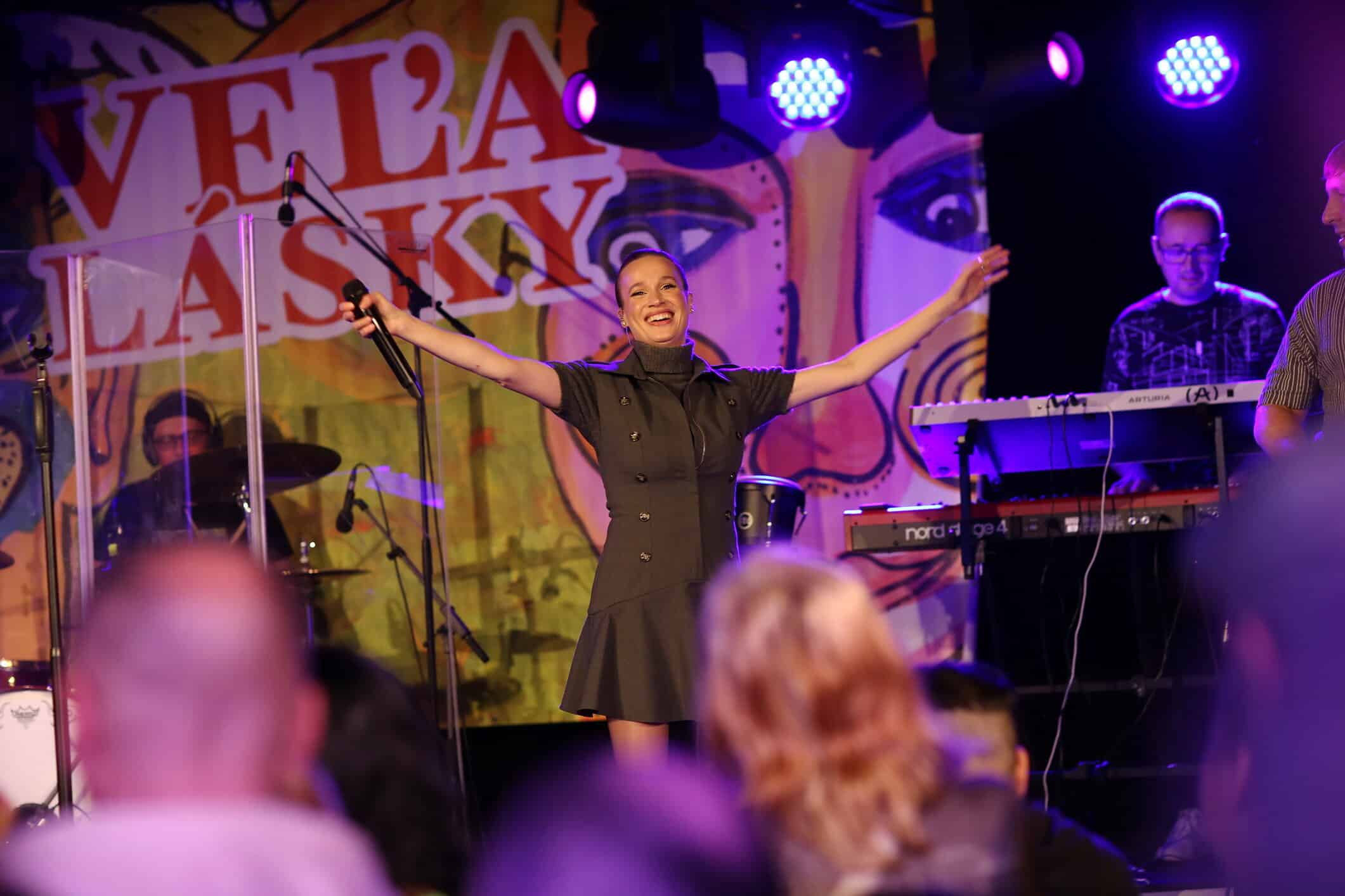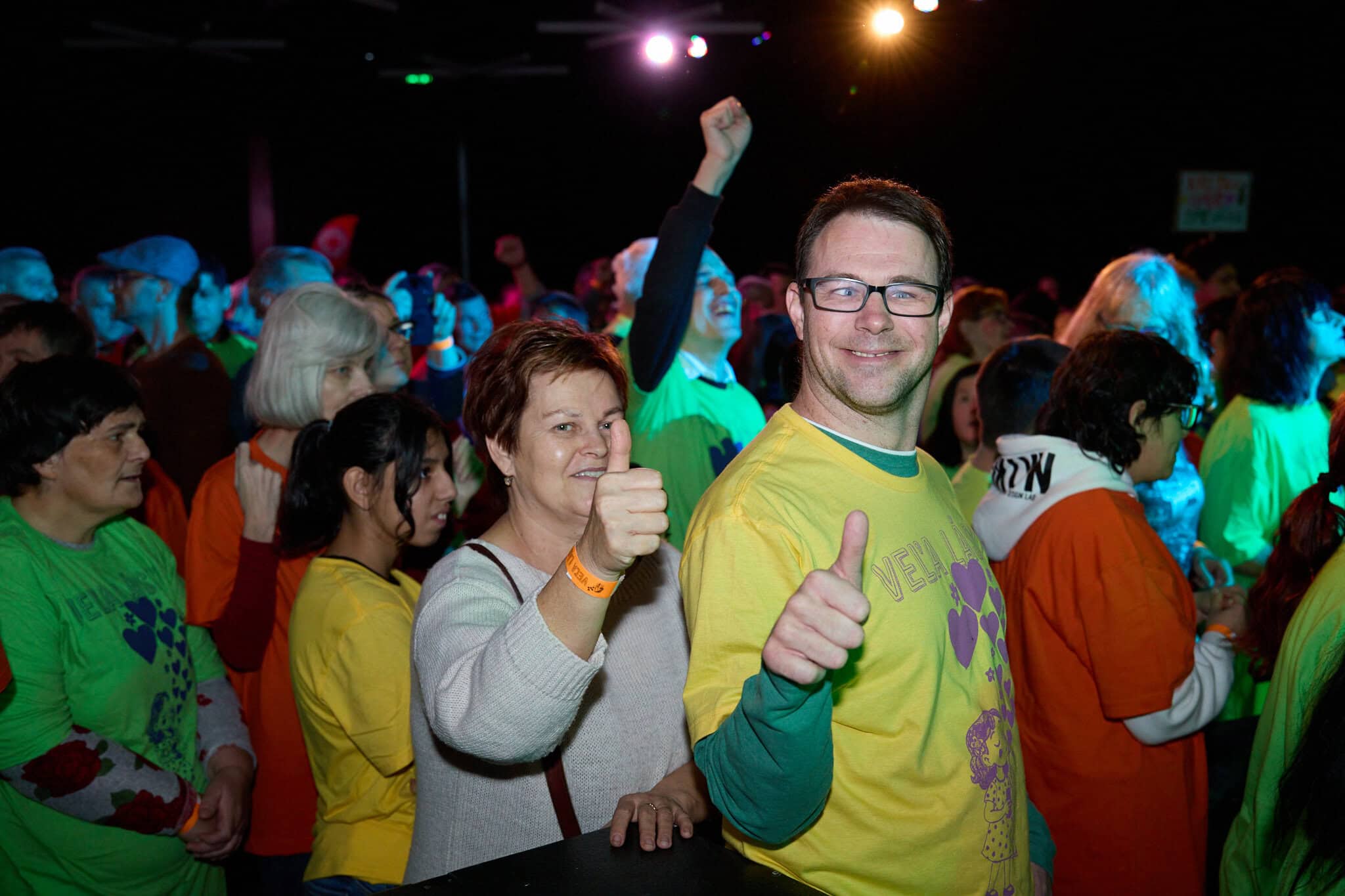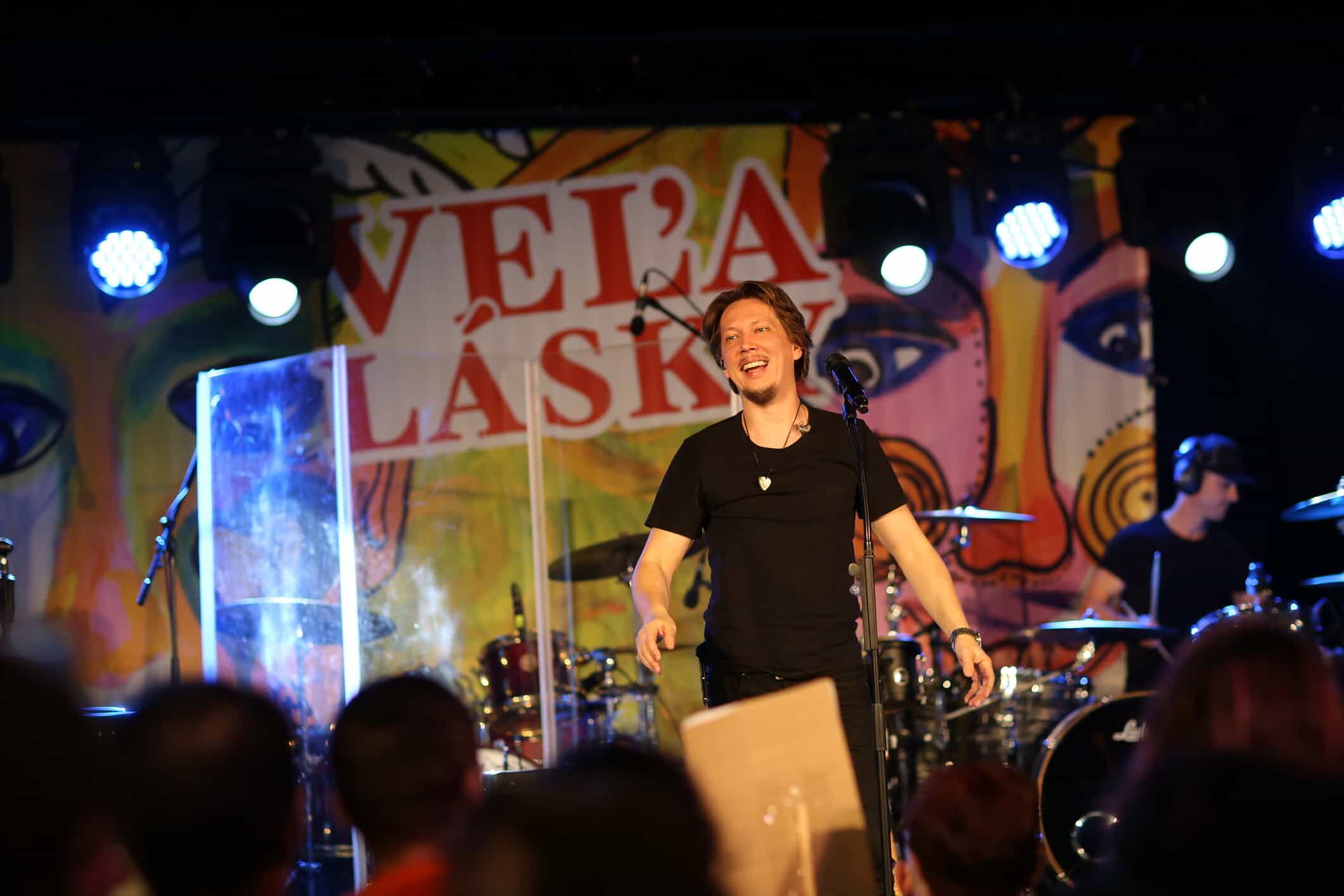 S príchodom prvých divákov už sa moderátorského mikrofónu ujal Richard Vrablec. Moderátor a zabávač. Nie je na takomto podujatí prvý krát a tak sme si už istí, že má pripravených pár žartíkov. Ale prečo vlastne volá do sály „inak obdarených“? Lebo už sú pripravené pre ne Latino rytmi a tanec Zumba, ktoré si s nimi prišla zatancovať Zumba s Peťkou a aj ja. Poďte medzi nás. Povedieme Vás krokmi. „Tešili sme sa na všetkých. Krásne sa nám s Vami tancovalo, lebo je to neskutočná energia, ktorá z nich ide z tých detí a jednoducho je to Veľa lásky.“ Skúsime si to spolu. Krok vpravo. Krok vľavo. Pridáme ruky. Teraz si to skúsime vpred a vzad. Vyskúšame aj otočku. Dáme si aj vláčik, aby sa zapojili aj tí, ktorí ešte váhali. Energiou je naplnená celá sála. Poskočme si. Tľapnime. Čo by to bolo za koncert Veľa lásky bez piesne Veľa lásky. A veľkého objatia. Spravíme si aj foto. To už majú deti pripravené darčeky pre Zumba žienky Peťku a Julku. Sami ich s láskou tvorili. „Sme radi, že sme opäť mohli byť súčasťou a otvárať túto krásnu udalosť.“