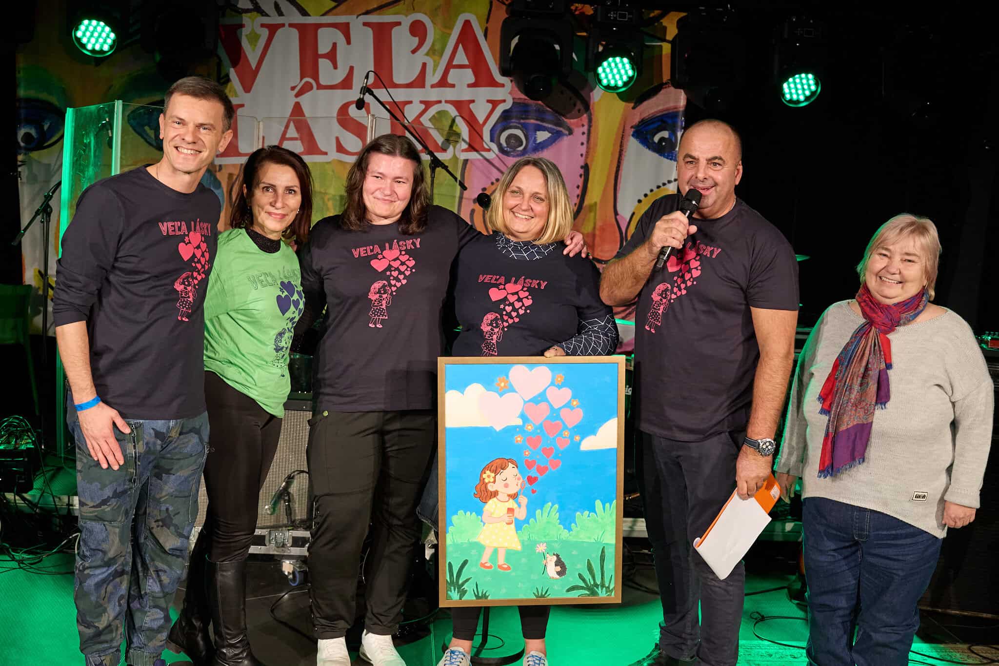 Ideme ďalej. Na pódium Richard Vrablec k sebe pozýva organizátora podujatia, Milana Štefánika a sympatizantku občianskeho združenia, Gabiku Bačovú. Spolu privítali prítomných a popriali im pekný hudobný zážitok. K sebe si volajú ešte jednu osôbku. Skromnú Timeu „Bejčík“ Csabayovú. Jej ruky vykúzlili nádherný obraz, ktorý je motívom tohto ročného podujatia. Timea ho daruje do zariadenia Lúč DSS Šemša.