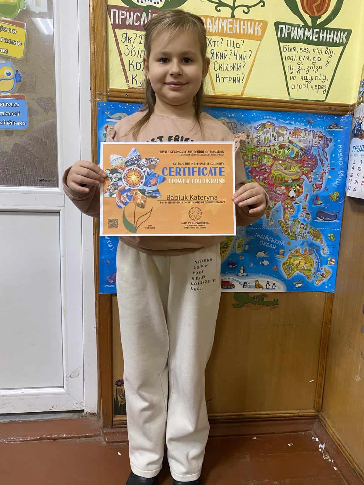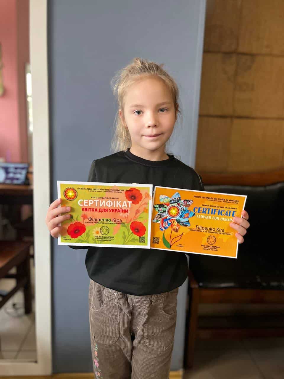 Z Ukrajiny postupne prichádzajú výtvarné práce – aktuálne je do projektu zapojených viac ako 487 kvetov, ktoré vytvorili deti a mladí ľudia v rôznych umeleckých technikách. Súčasťou projektu je aj symbolické poďakovanie v podobe certifikátov – rozdelených bolo už 516 certifikátov, z toho 433 žiakom a 83 učiteľom. Projekt Kvet pre Ukrajinu tak pokračuje v budovaní symbolického mosta medzi deťmi z krajín, ktoré spája empatia, kreativita a spoločná túžba po mieri.